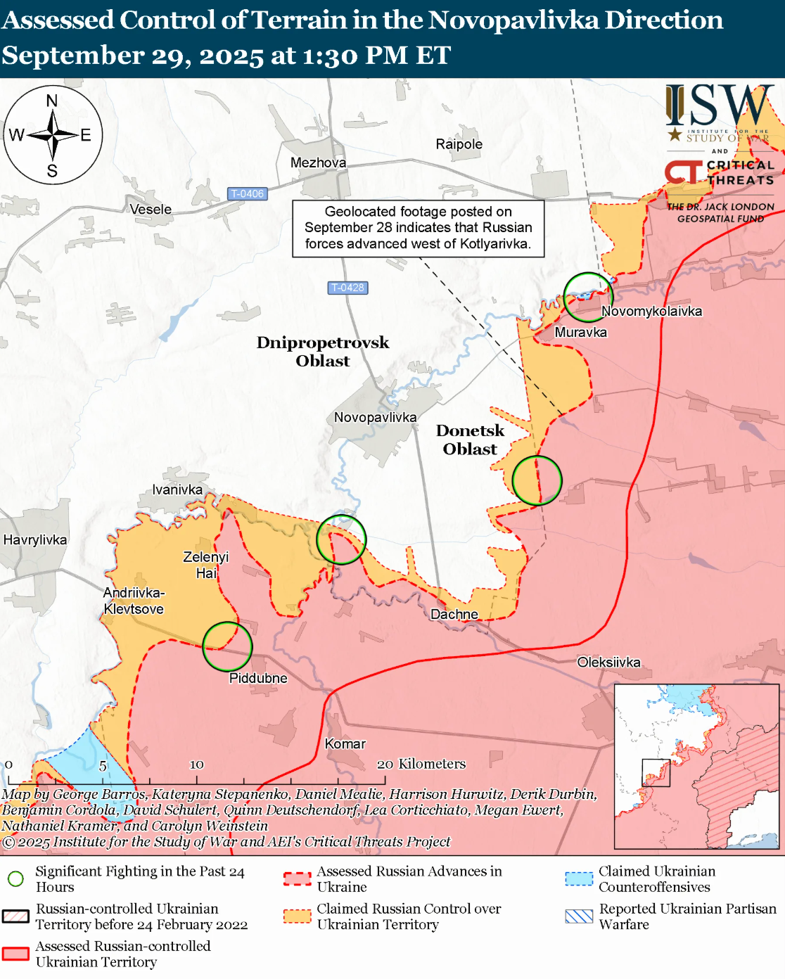 Водночас армія Кремля нещодавно просунулася на Новопавлівському напрямку. Геолокаційні відеозаписи свідчать про те, що російські війська просунулися на захід від Котлярівки (на схід від Новопавлівки).