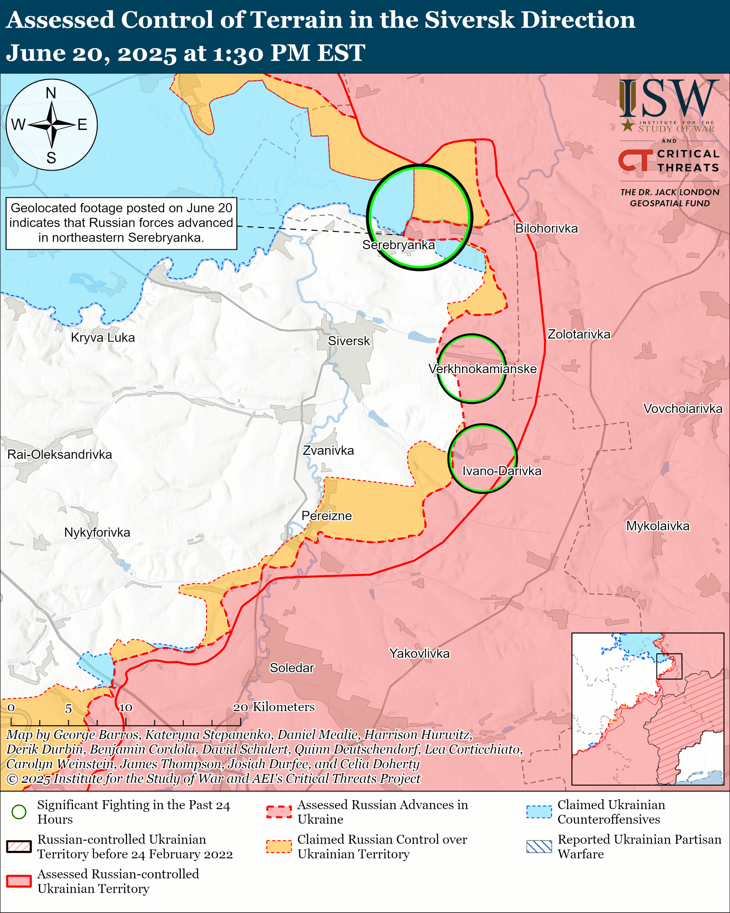 Як змінилася лінія фронту за 20 червня / Карти ISW