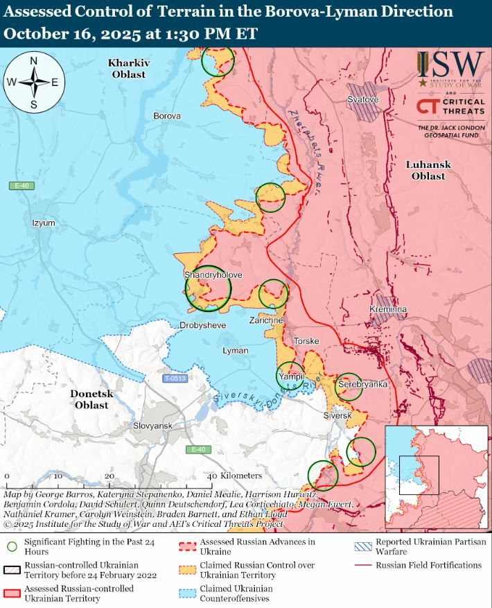 16 жовтня російські війська продовжили наступальні операції на Лиманському напрямку, але підтвердженого прогресу не досягли.
