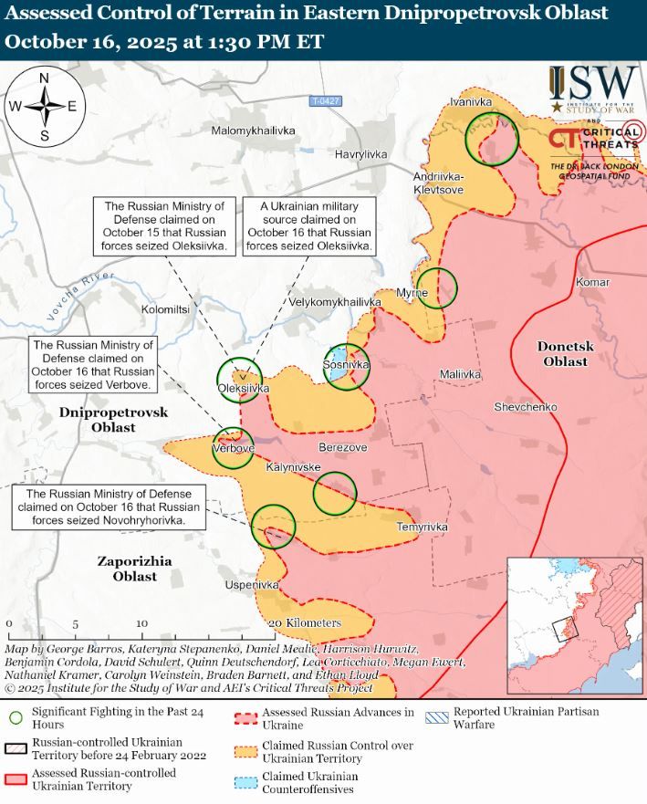 16 жовтня російські війська продовжили наступальні операції на півночі Сумської області, але підтвердженого прогресу не досягли. Захоплення Олексіївки, про яке заявляли росіяни, ISW назвали непідтвердженою заявою.