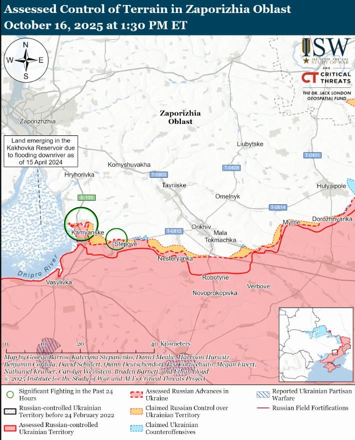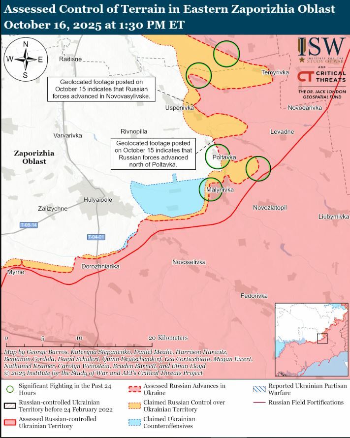 16 жовтня російські війська продовжили наступальні операції на заході Запорізької області, але підтвердженого прогресу не досягли.