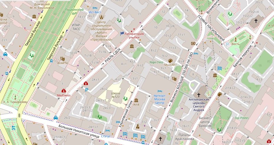 Москву розписали правдою про війну / Фото скриншоти OpenStreetMap