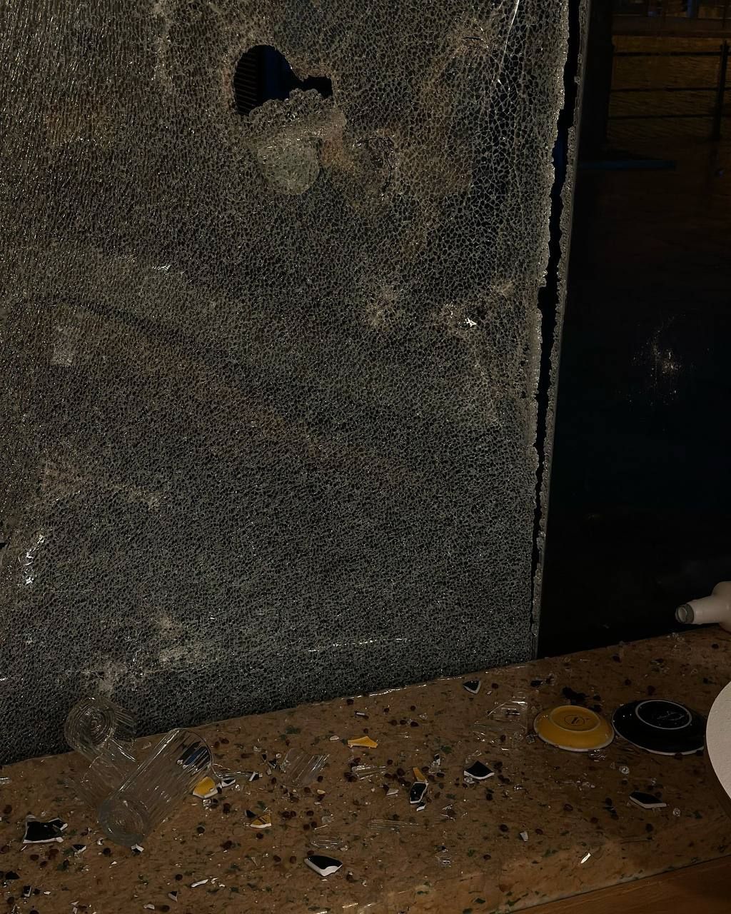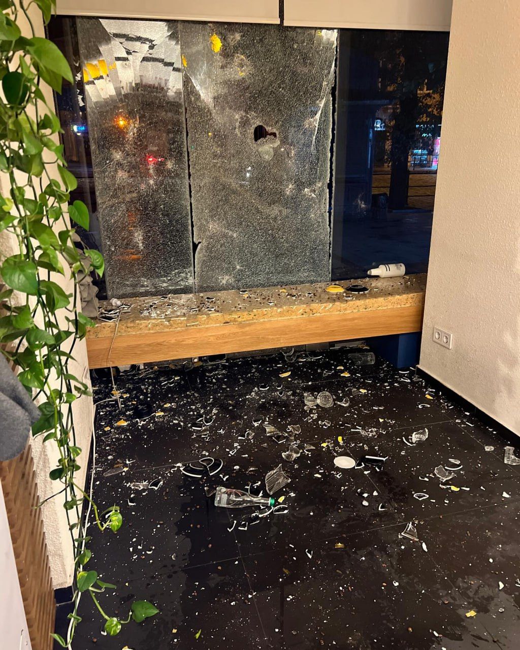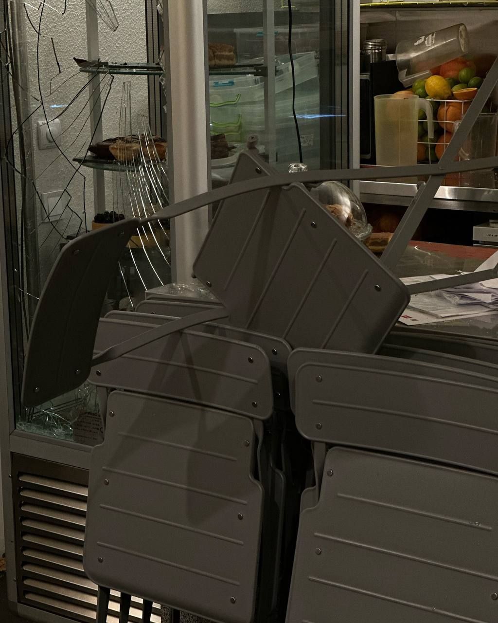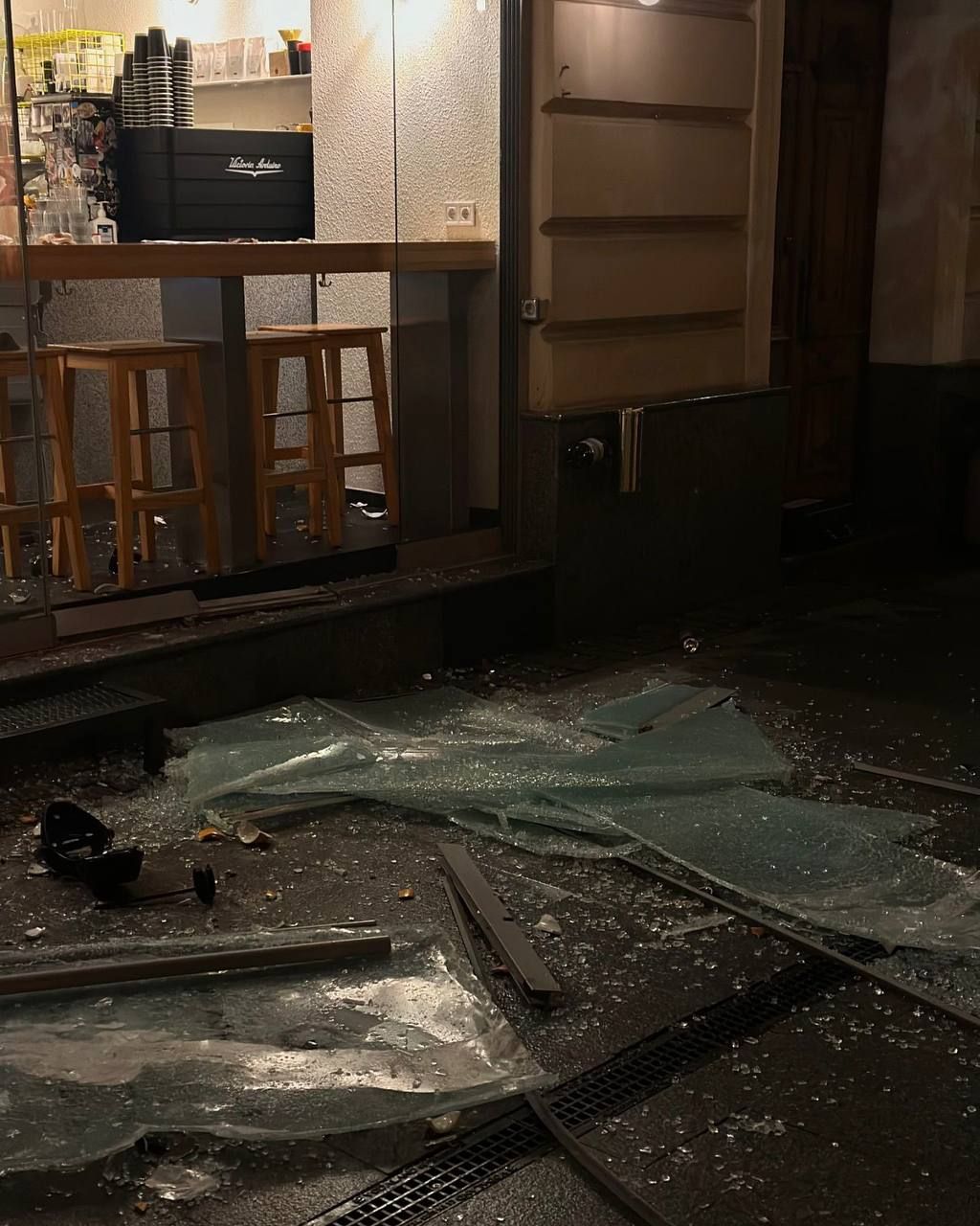 Як наслідок розбиті майже всі скляні вітрини, практично весь посуд, знищено кілька одиниць обладнання та інвентаря, пошкоджено світильники та деякі меблі, знищено або підлягає утилізації певна кількість товару,