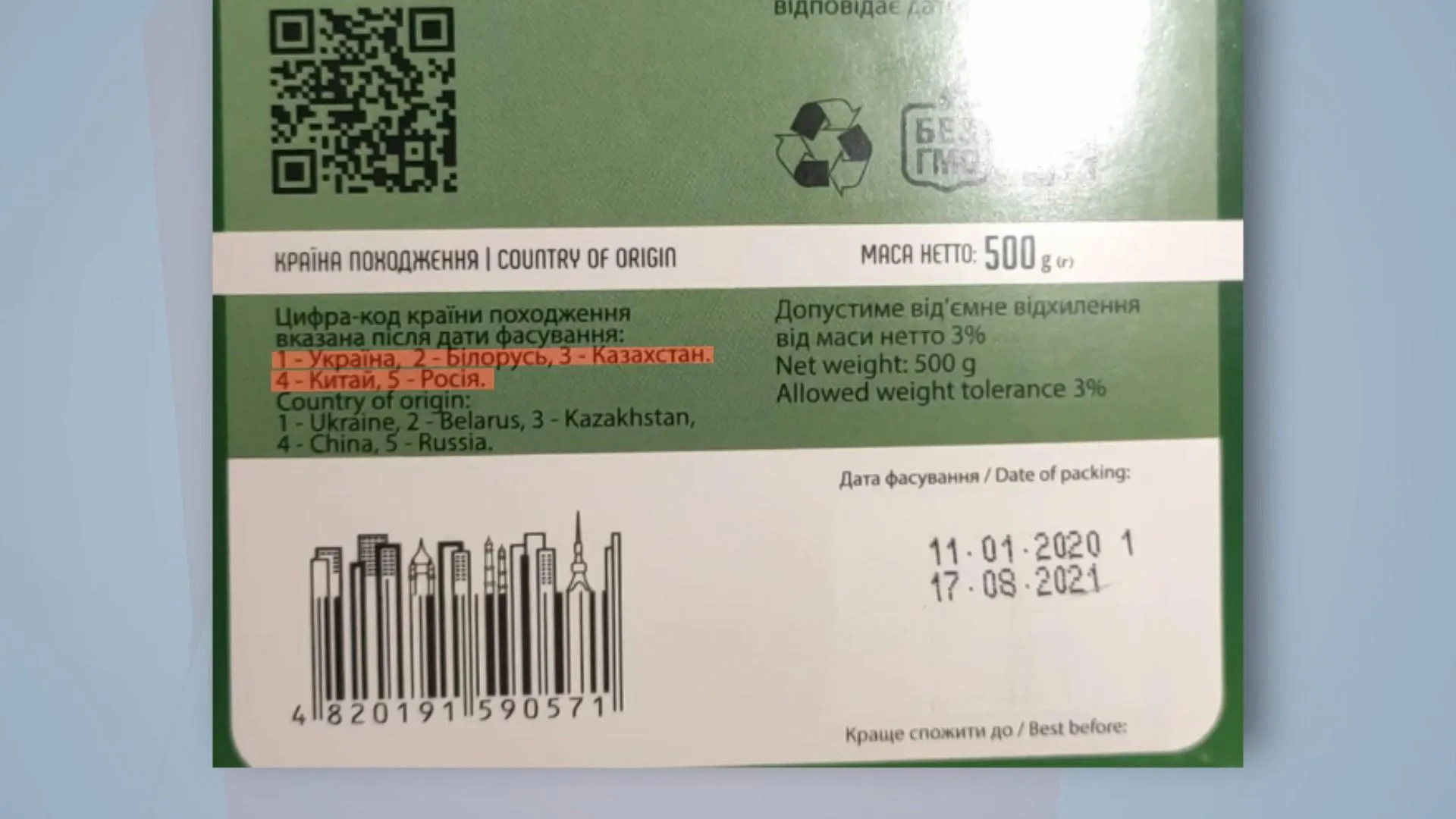 На упаковці гречки в супермаркетах зазначено, що країна виробник – Україна. Але окремо вказують і країну-походження. На одній пачці бачимо, що це може бути Україна, Казахстан чи Молдова. На прилавках у Львові на одній з пачок знайшли 5 варіантів з можливим походженням гречки: там є і Росія, і Казахстан, і Білорусь, і Китай.