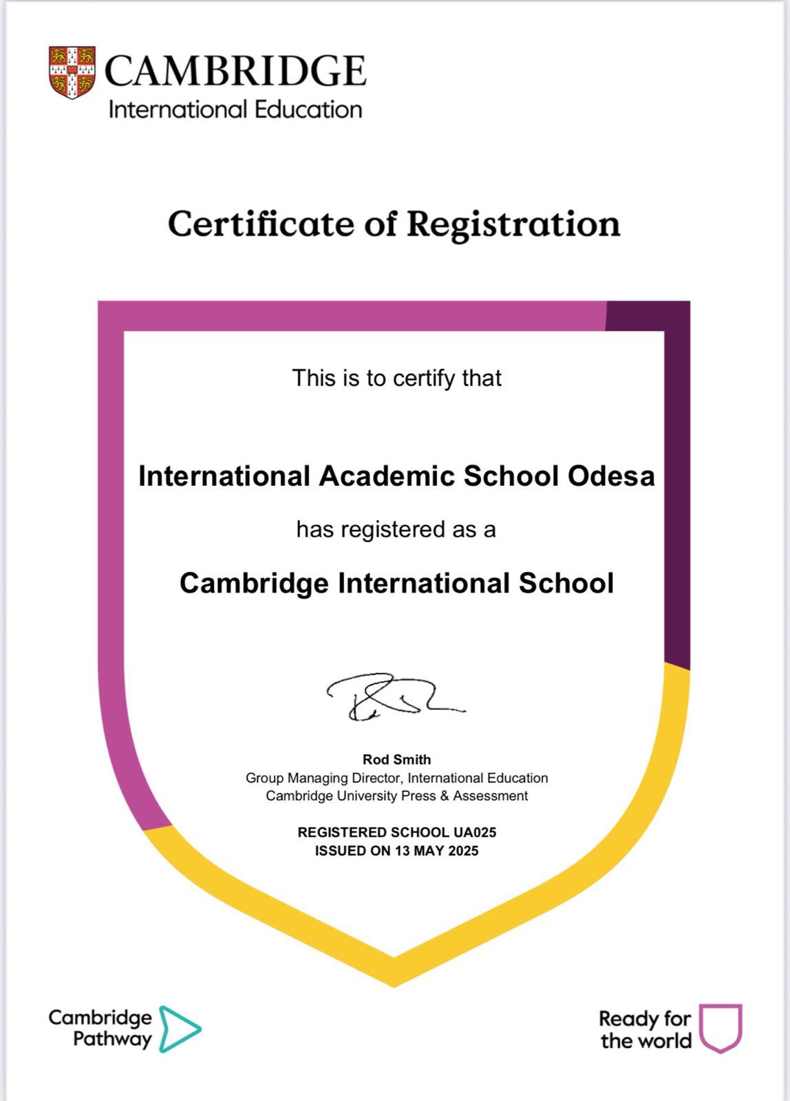 Кваліфікації Cambridge, такі як IGCSE та A-Level, визнаються у 160 країнах. Випускники Міжнародної академічної школи "Одеса" вступають до престижних вишів на рівні із випускниками шкіл Великої Британії, США, Канади, Австралії та Німеччини.