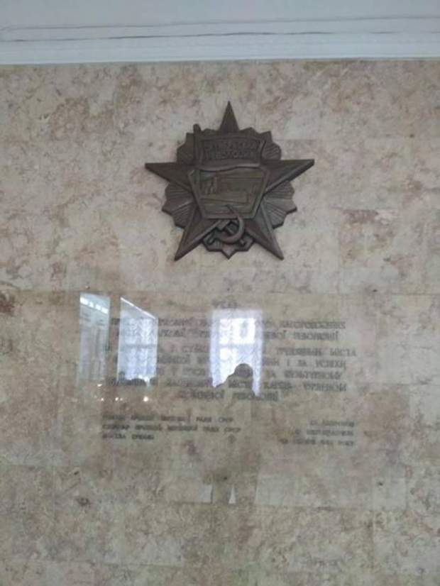 На стіні у Харківській міській раді досі красуються радянські барельєфи та наказ про нагородження міста орденами часів СРСР.