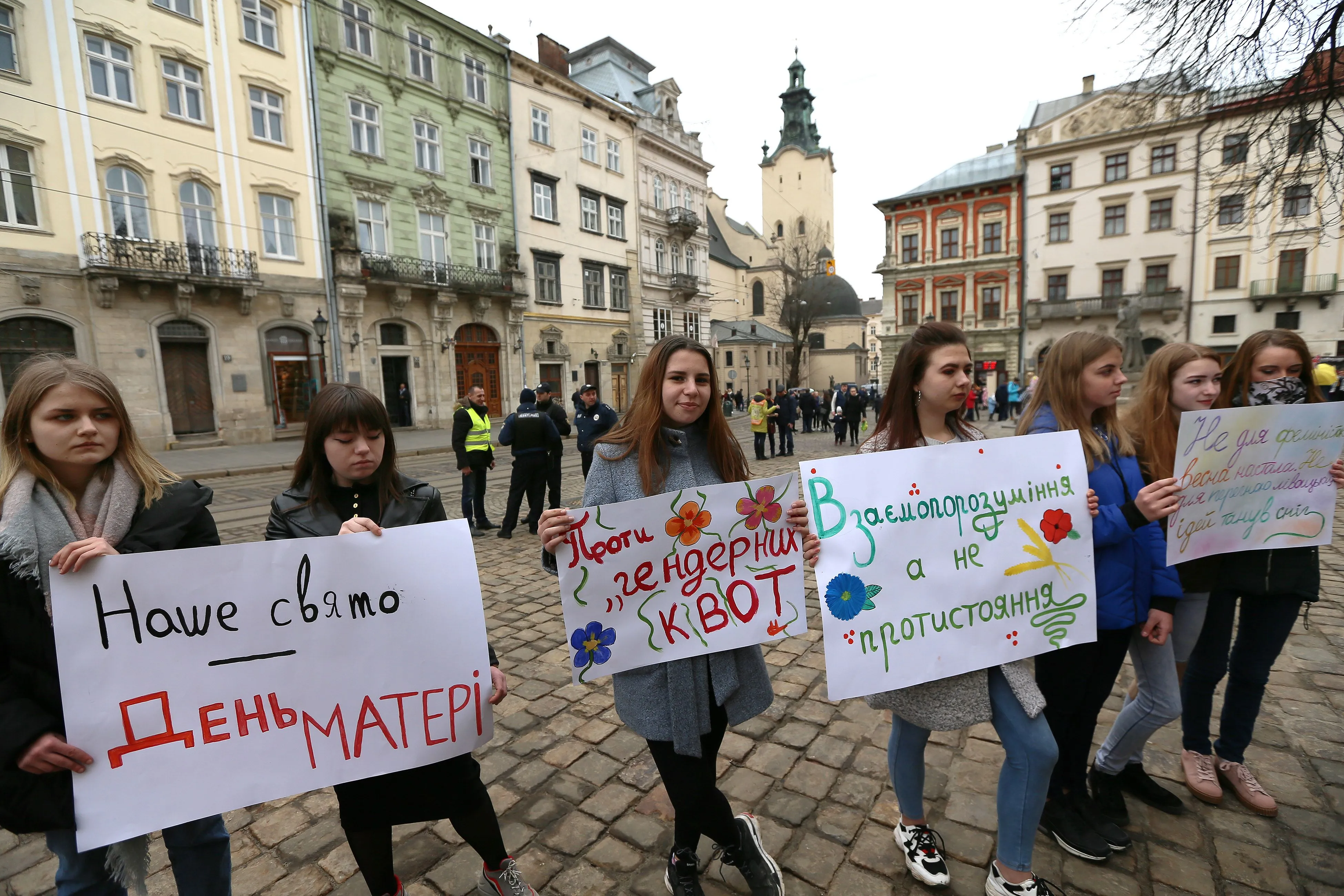 У Львові відбулося одразу два мітинги: одні учасниці вимагали гендерної рівності, інші – традиційних цінностей.