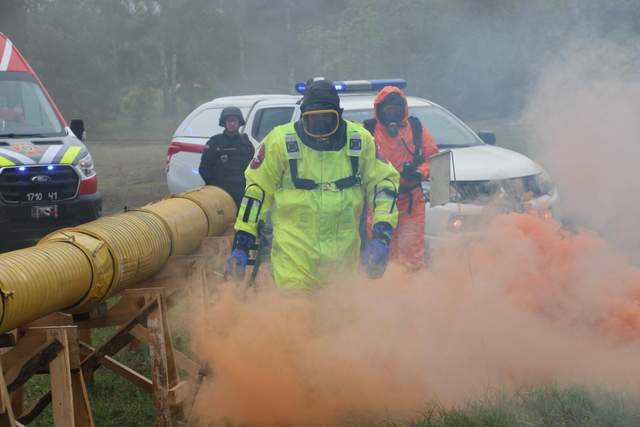 - Також відпрацювали сценарій ліквідації аварії з витоком хімічної небезпечної речовини.