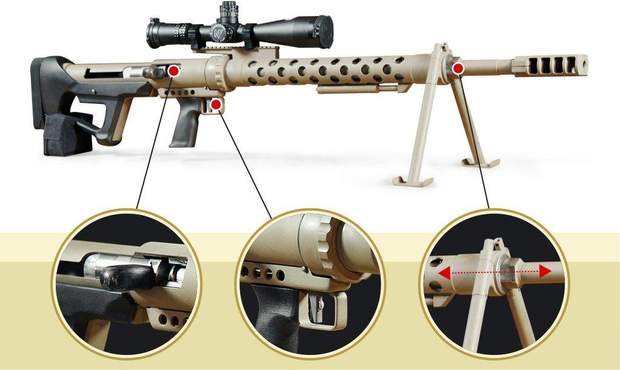 Гвинтівка заточена під натівський калібр 12,7. І в цьому є певні труднощі. Адже Україна втратила завод у Луганську, що випускав патрони радянського зразка. А от налагодити закупівлю натівських патронів не так і просто.