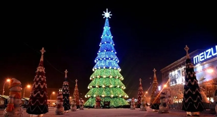 У Запоріжжі головну ялинку зазвичай ставлять на площі Маяковського. Цього року мерія провела тендер на монтаж і демонтаж новорічних містечок на суму приблизно 2 мільйони гривень.