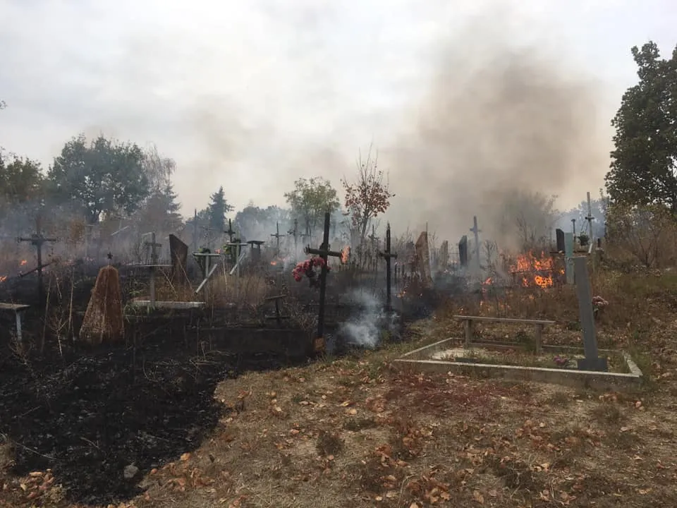 Про інцидент повідомили у соцмережах і місцевих телеграм-каналах. Також в інтернеті з’явилися відповідні фото, передає 24 канал. За словами очевидців, місцеві жителі палили сміття, і зрештою вогонь перекинувся на кладовище.