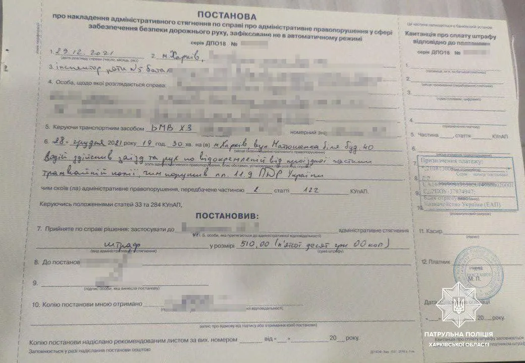 Фіналістку "Міс Україна" покарали за порушення ПДР / Фото Патрульної поліції Харківщини