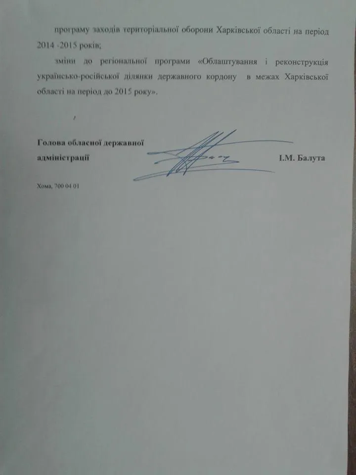 “Мной также направляется письмо на имя Главы Харьковского областного совета Чернова С.И. с требованием немедленно инициировать созыв новой, внеочередной сессии с целью принятия Программы территориальной обороны Харьковской области и внесения изменений в Программу обустройства украино-российской границы”, - подчеркнул глава Харьковской ОГА.