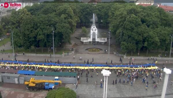 Харьковчане развернули 50-метровый флаг Украины (Фото)