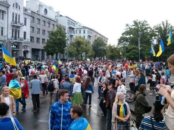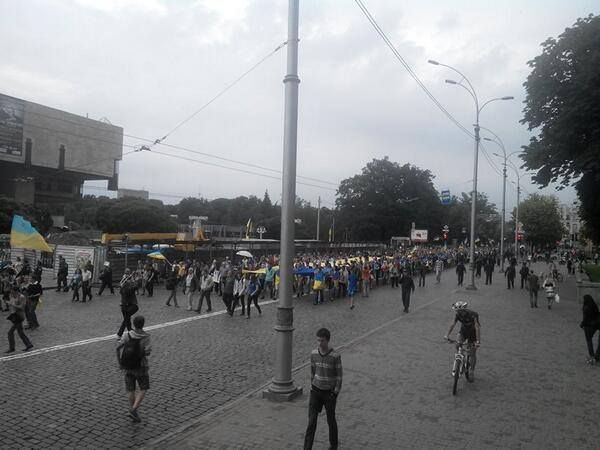 Громадське TVВ центре Харькова состоялось шествие за единство Украины.