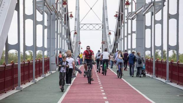 Несмотря на карантин, киевляне и гости столицы вышли на пешеходный мост на Труханов остров