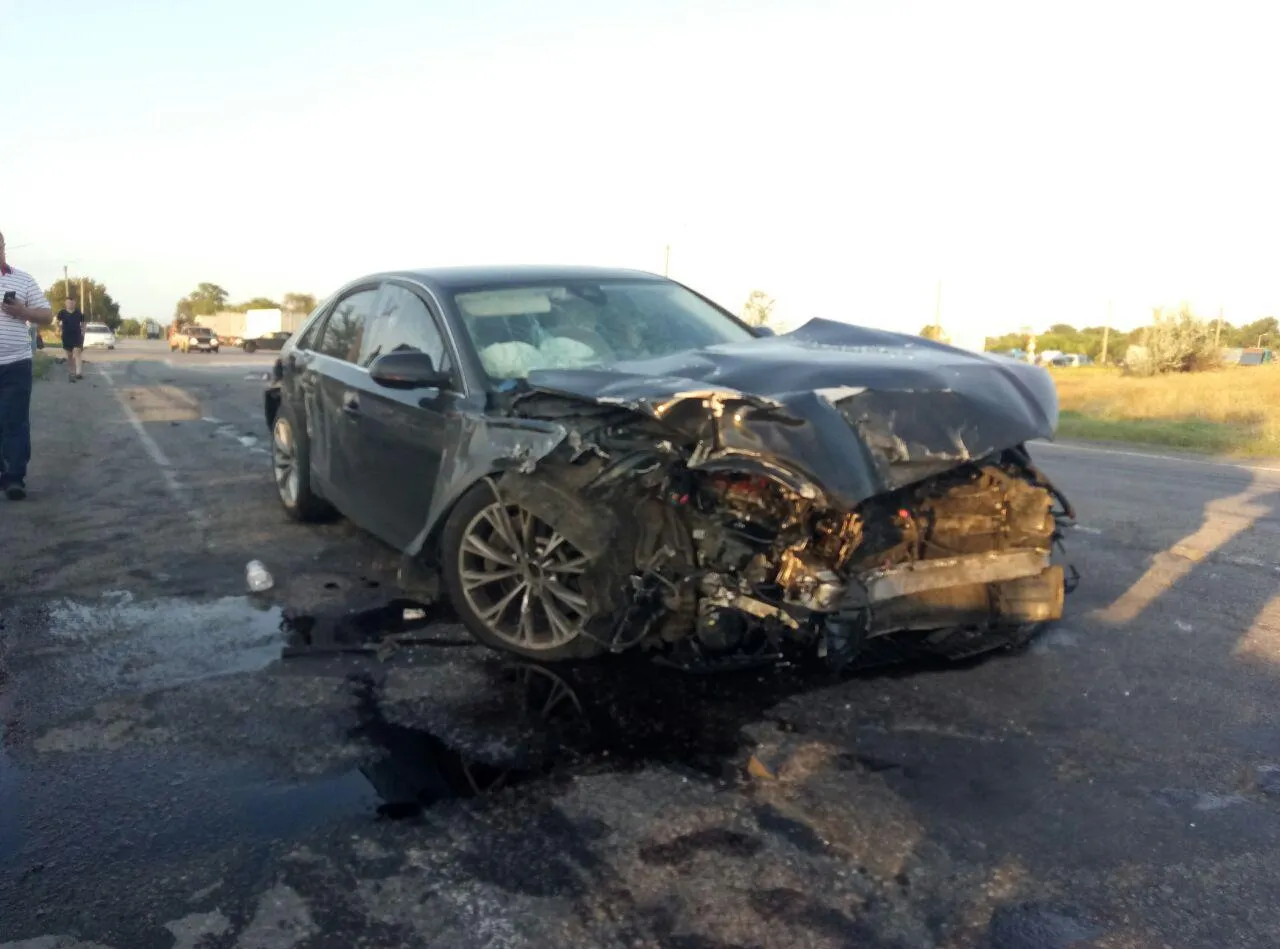 На Днепропетровщине Ауди А8 влетела в рейсовый автобус Мерседес