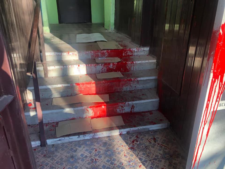 Так, красной краской обляпали вывески офиса и подъезд на улице Полтавской. Об этом сообщили в телеграм-канале "Фрайкор".