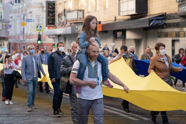 - Харьковчане были одеты в вышиванки, несли с собой вышитые рушники.