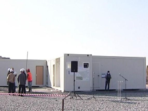 Собирают модульные дома харьковские строители вместе с немецким коллегами. Здесь все отдельное — душ, санузел, кухня. Немцы говорят: жилье временное, рассчитаное на три года, но очень теплое.