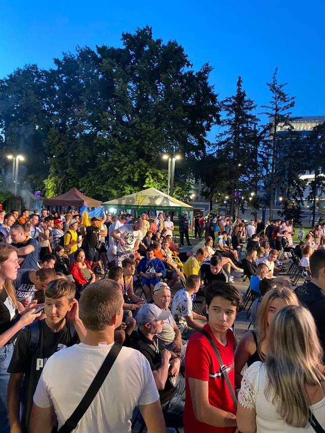 В Харькове матч четвертьфинала Евро-2020 транслируют на центральной площади. С 18:00 болельщики могли принять участие в спортивных активностях. На территории фан-зоны проводили конкурсы, плели сине-желтые браслеты, рисовали аквагрим.