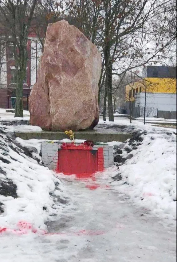 Облитый в 2019 году памятник УПА в Харькове / Фото Нацполиции
