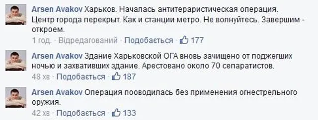 "Не волнуйтесь. Завершим - откроем. Здание Харьковской ОГА снова "зачищено" от людей, которые ночью подожгли и захватили здание. Арестовано около 70 сепаратистов. Операция пооводилась без применения огнестрельного оружия", - написал он в комментариях к своему вчерашнему сообщению в Facebook.
