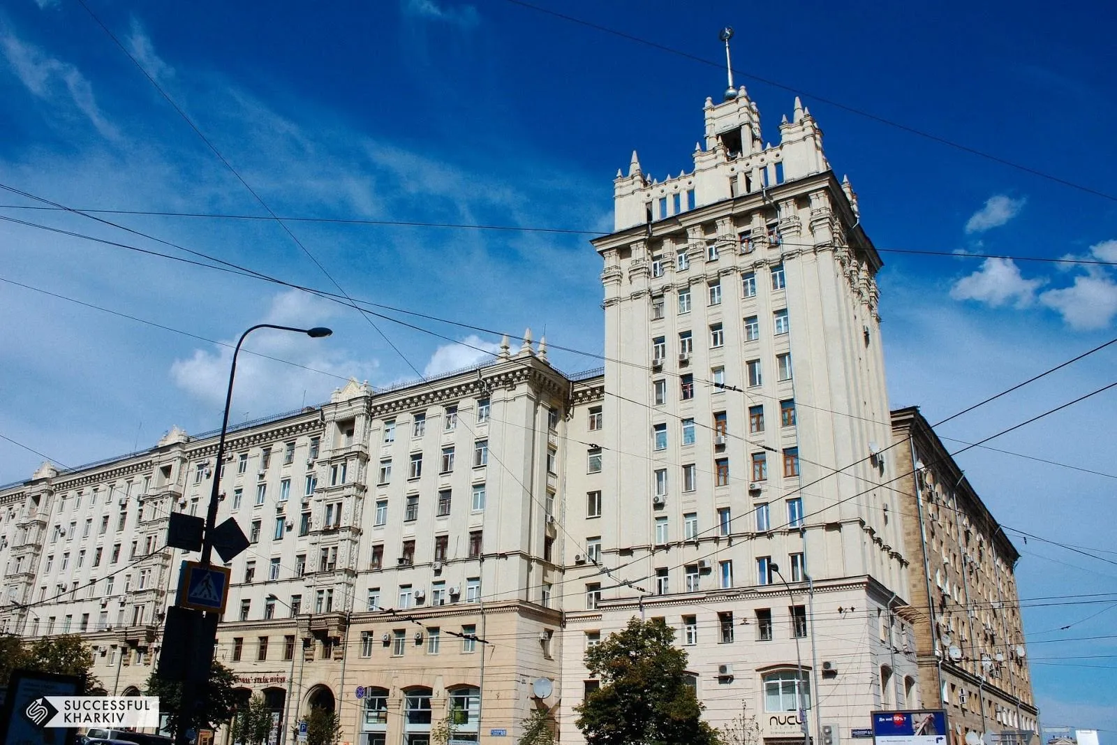 Також належить до "семи чудес" Харкова. Хмарочос, побудований у 1960-их роках, який на 12 поверхів здіймається над містом й простягається на цілий квартал. Ця будівля зведена у "сталінському ампірі", що й робить її цікавою для туристів. Адже цей стиль був притаманний лише країнам Радянського Союзу й набув особливого поширення у післявоєнний час.