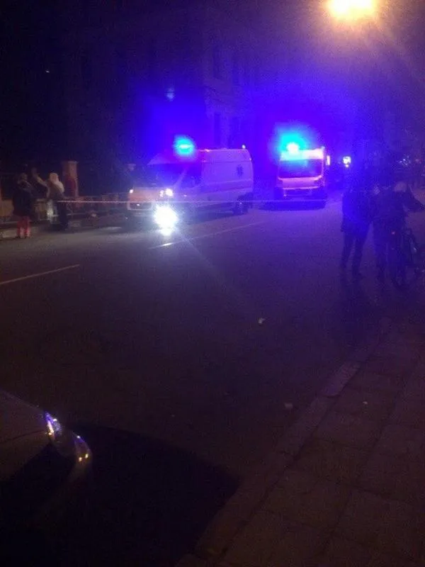 На місці події працюють рятувальники і стоять карети швидкої допомоги.