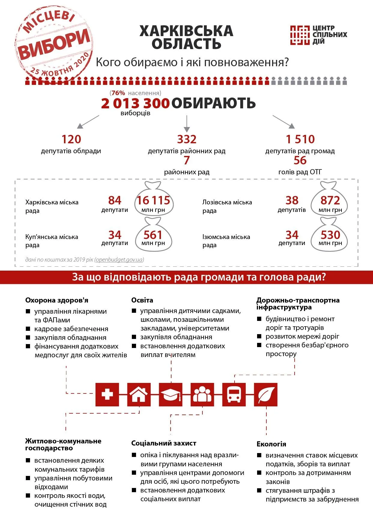 Місцеві вибори 2020 на Харківщині / Інфографіка Центру спільних дій