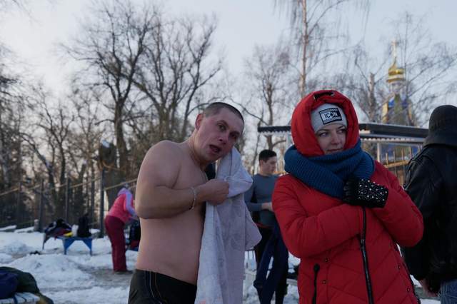 Мешканці столиці пірнають в ополонки на Водохреще / Фото "Українська правда"