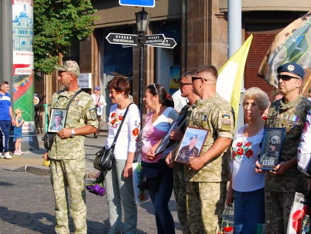 На відміну від сонячної погоди у Києві, зранку у Львові дощить і стало досить прохолодно. Втім, погода не стала на заваді для сотень людей прийти на святкові і пам'ятні заходи.