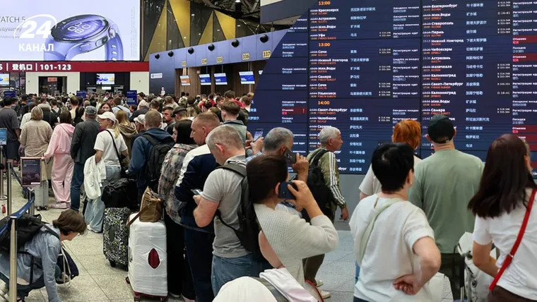 - Внаслідок цього у московському аеропорту "Шереметьєво" стався значний затор із пасажирів – сотні людей не змогли вилетіти через масові скасування рейсів.