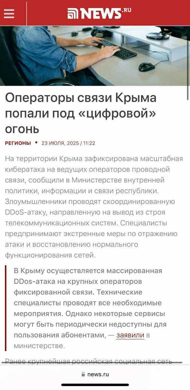 За даними співрозмовника в розвідці, масштабна операція тривала кілька днів. Потужна DDoS-атака фактично паралізувала інформаційні системи та мережеву інфраструктуру в Криму.