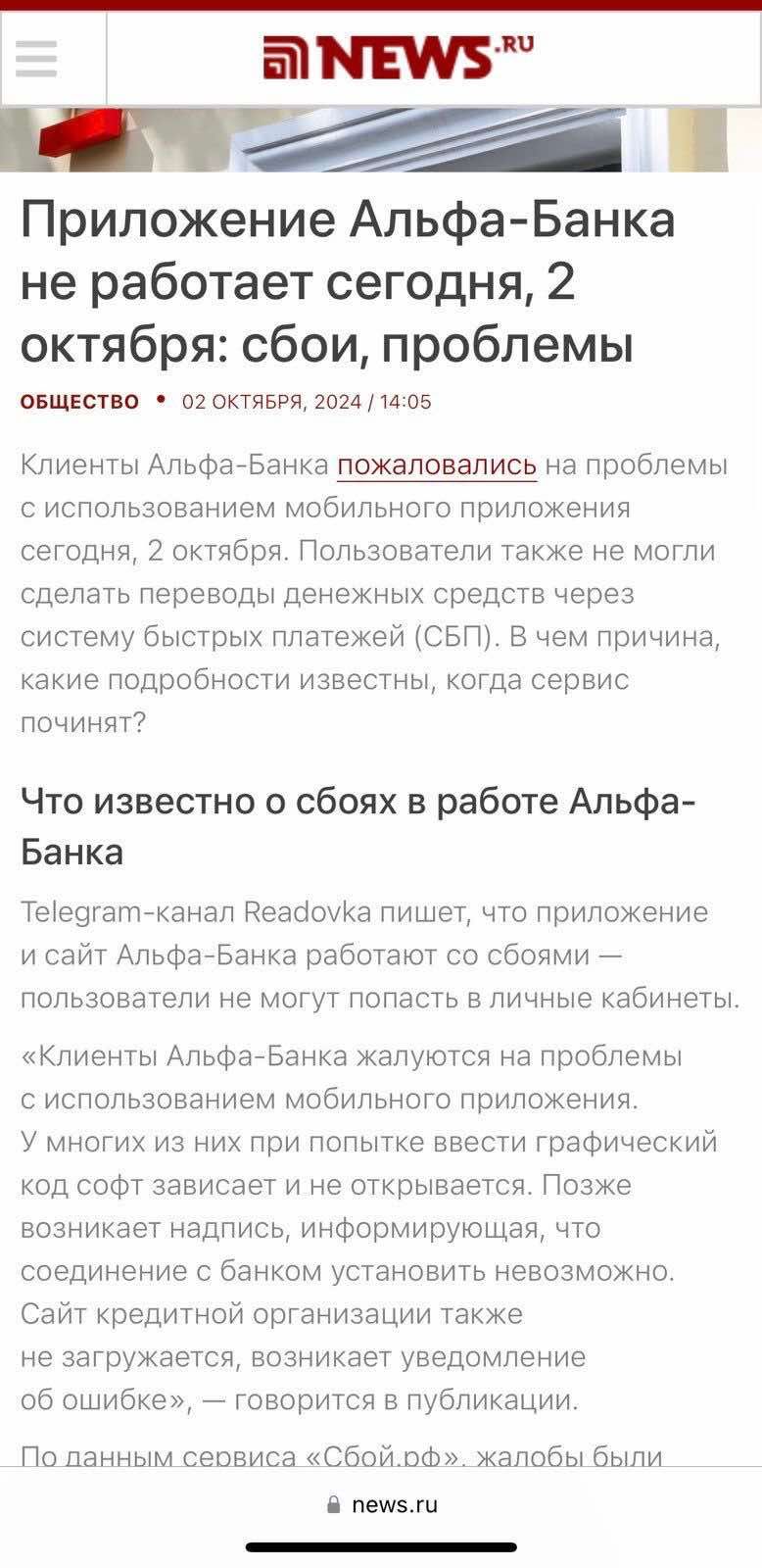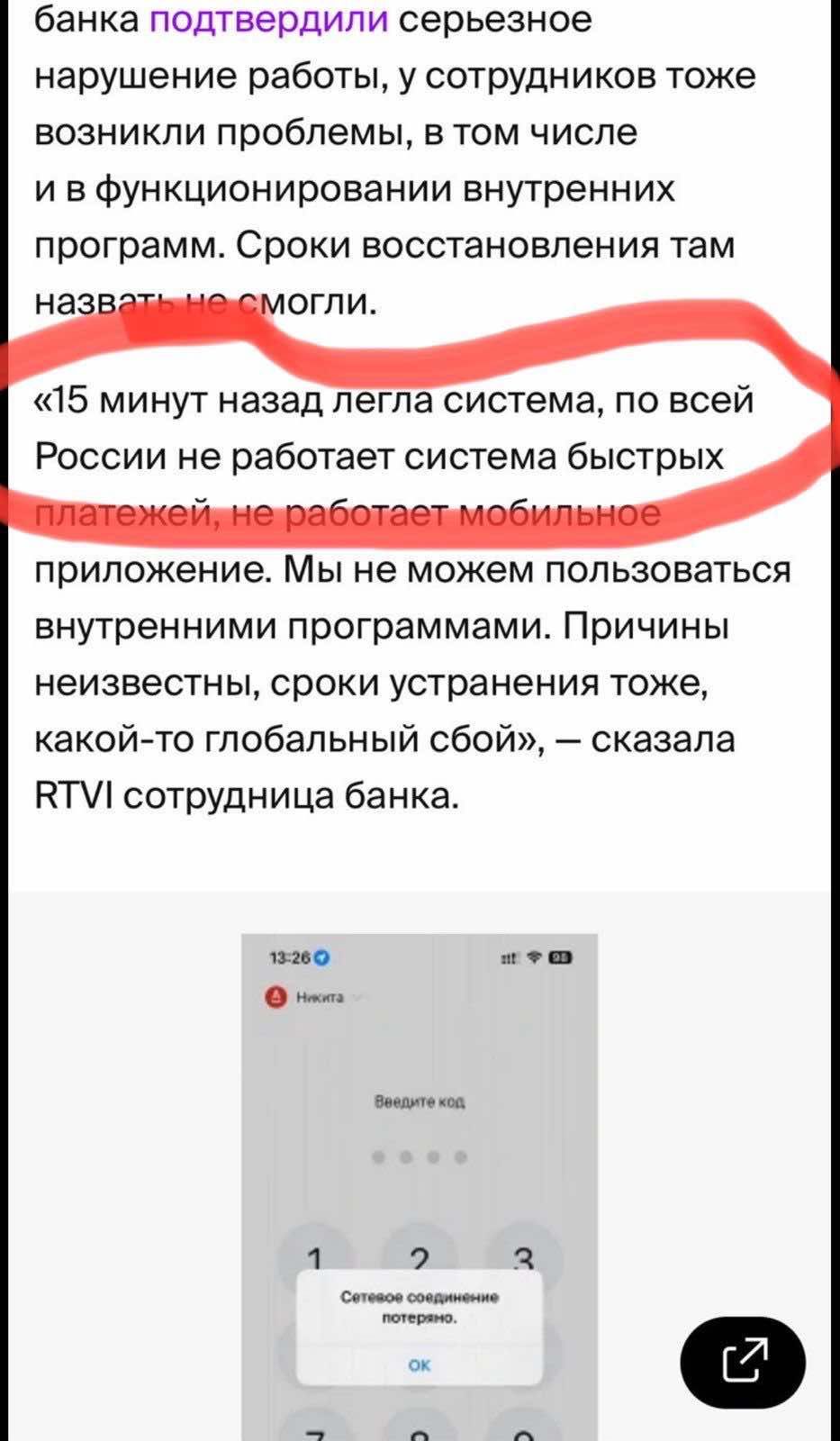 Як повідомляють російські ЗМІ, в банках держави-агресорки визнають глобальний збій, проте не зазначають його причини. Також не можуть вказати терміни відновлення роботи сервісів.