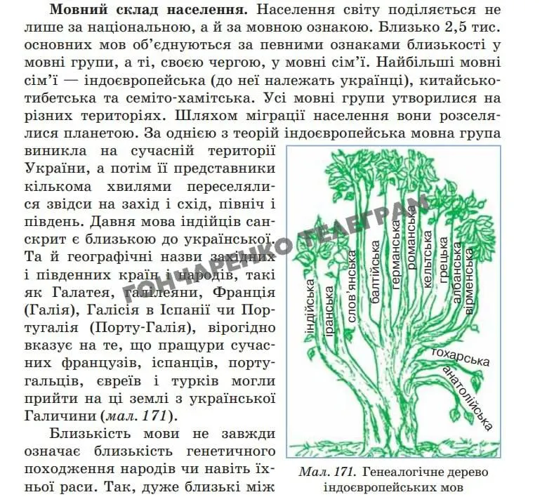 Далі у підручнику мовиться, що близькість мови не завжди означає близькість генетичного походження народів чи навіть їхньої раси. Про це Небензя вирішив промовчати.
