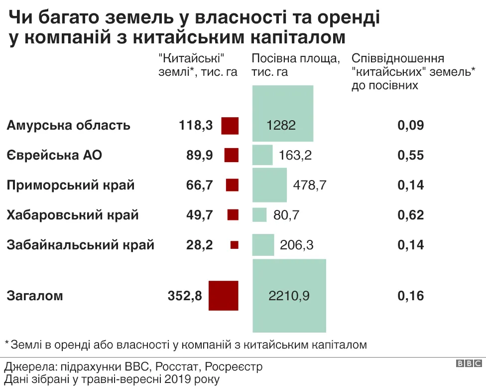 Таким чином, виключно за відкритими даними з Росстату та Росреєстру, КНР так чи інакше оволоділа 4 мільйонами 352 тисячами гектарів російської землі, що трохи менше, ніж площа Московської області.