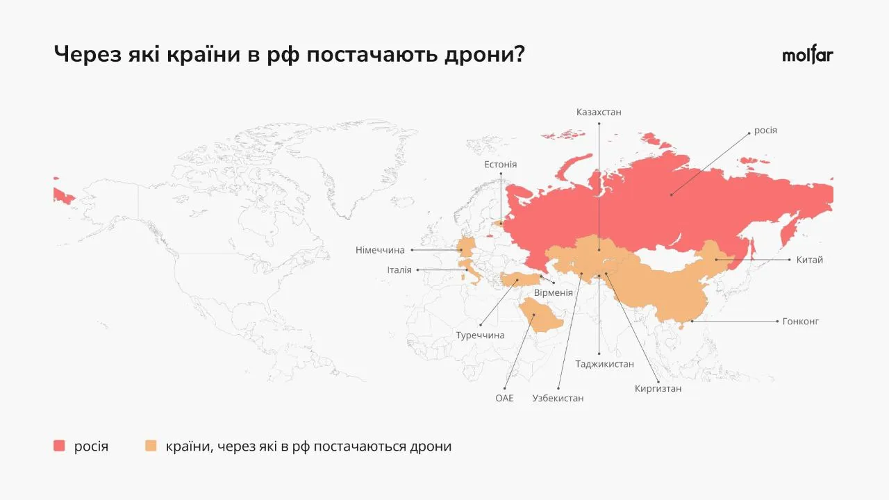 Але мова йде не тільки про БпЛА — китайські виробники нині активно постачають в РФ і комплектувальні елементи до них.