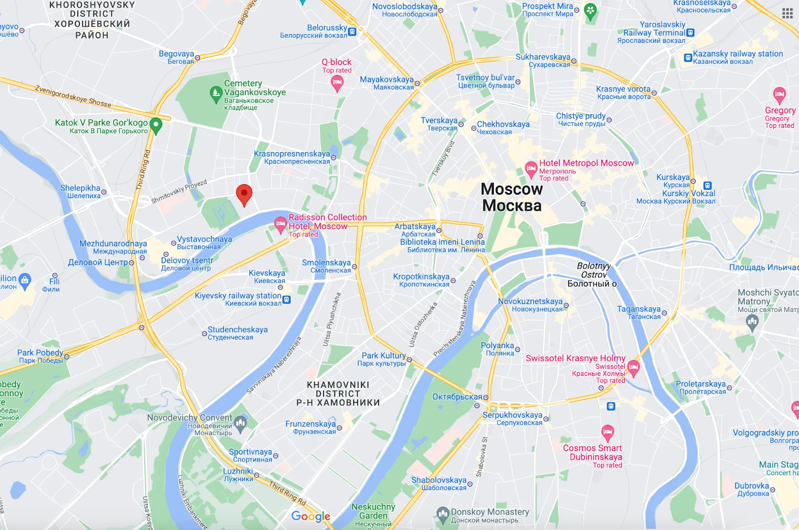 Ймовірна адреса центру — Москва, Лужнєцька набережна (yandex map).
