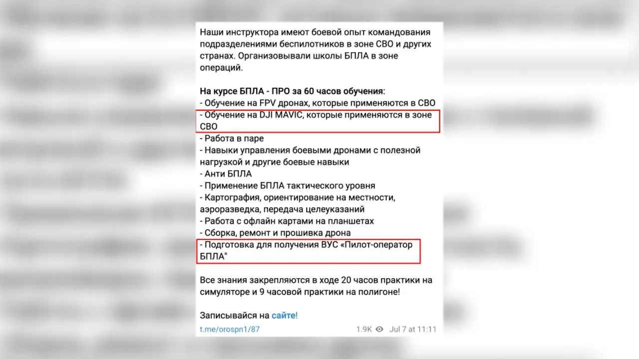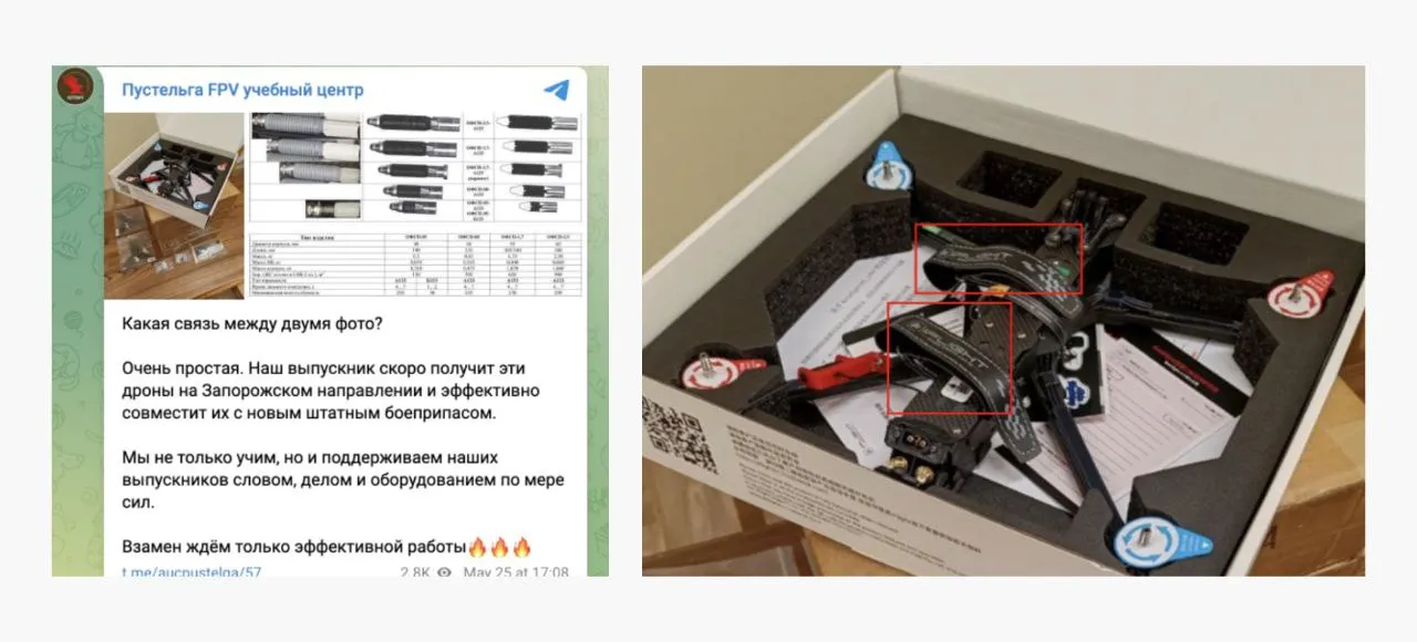 Публікація з телеграм-каналу російської школи пілотів БпЛА "Пустельга"