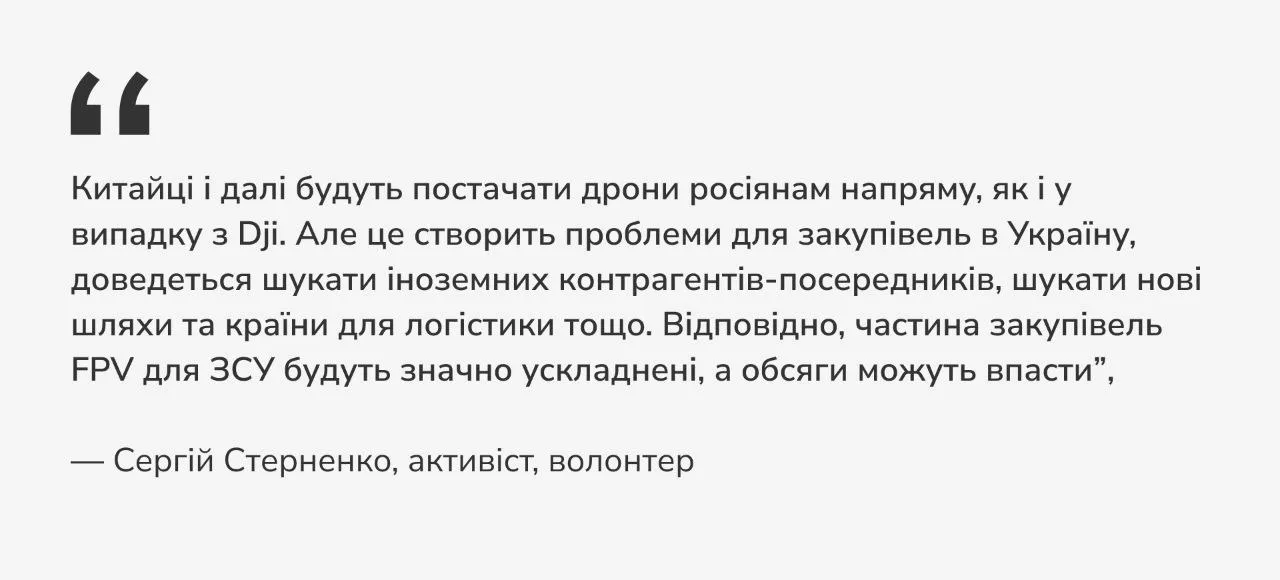 Інші українські волонтери також заявляли про те, що у закупівлях виникають складнощі. Іноді дрони викупають буквально з рук росіян. Про це писав користувач твіттер під ніком cheskeradio.