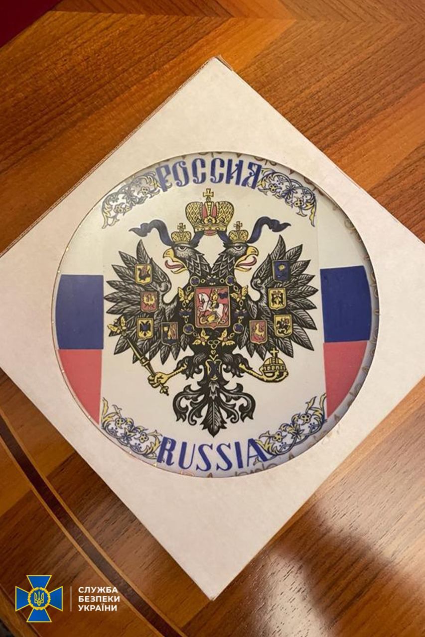 Окрім того, у фігуранта знайшли відзнаку "За взаємодію" від представників держави-агресора, а також заборонену комуністичну та прокремлівську символіку.