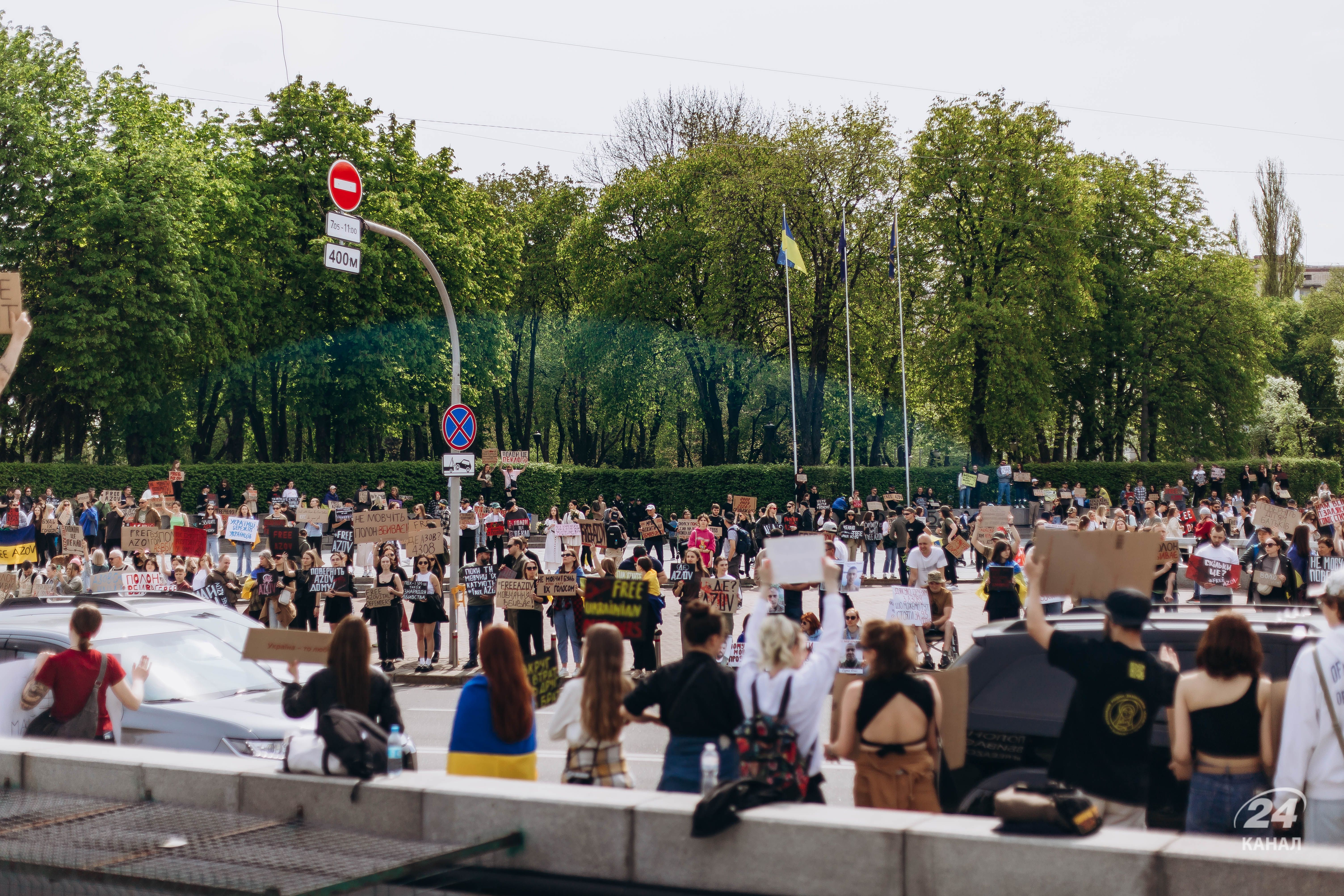 Цього разу люди, що вийшли підтримати звільнення захисників "Азовсталі" та інших українських військовополонених з полону вийшли до території поблизу Київського палацу дітей та юнацтва, а також парку Вічної Слави. У своїх руках рідні, друзі та близькі військовополонених тримали плакати із закликами сприяти звільненню наших захисників з полону.