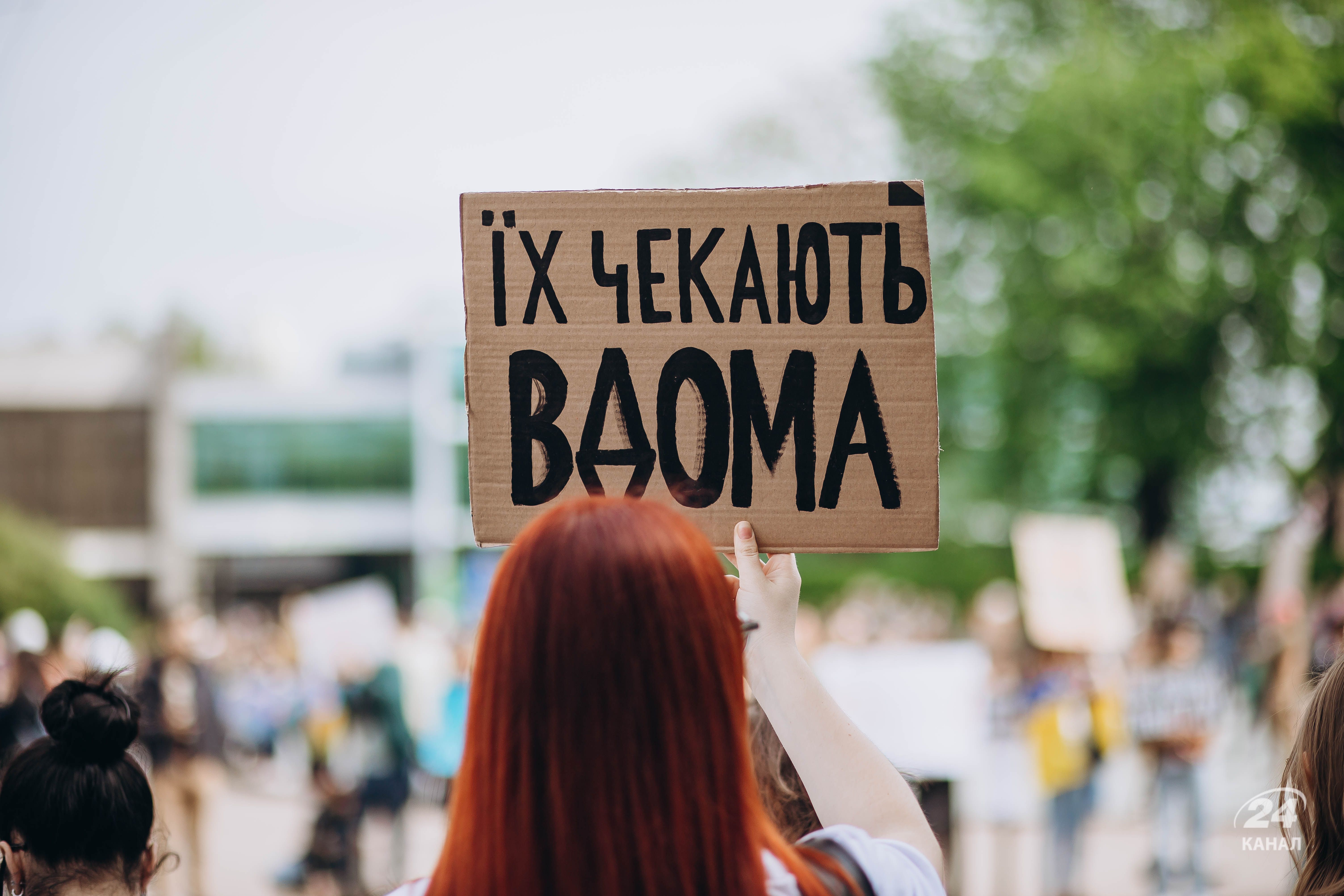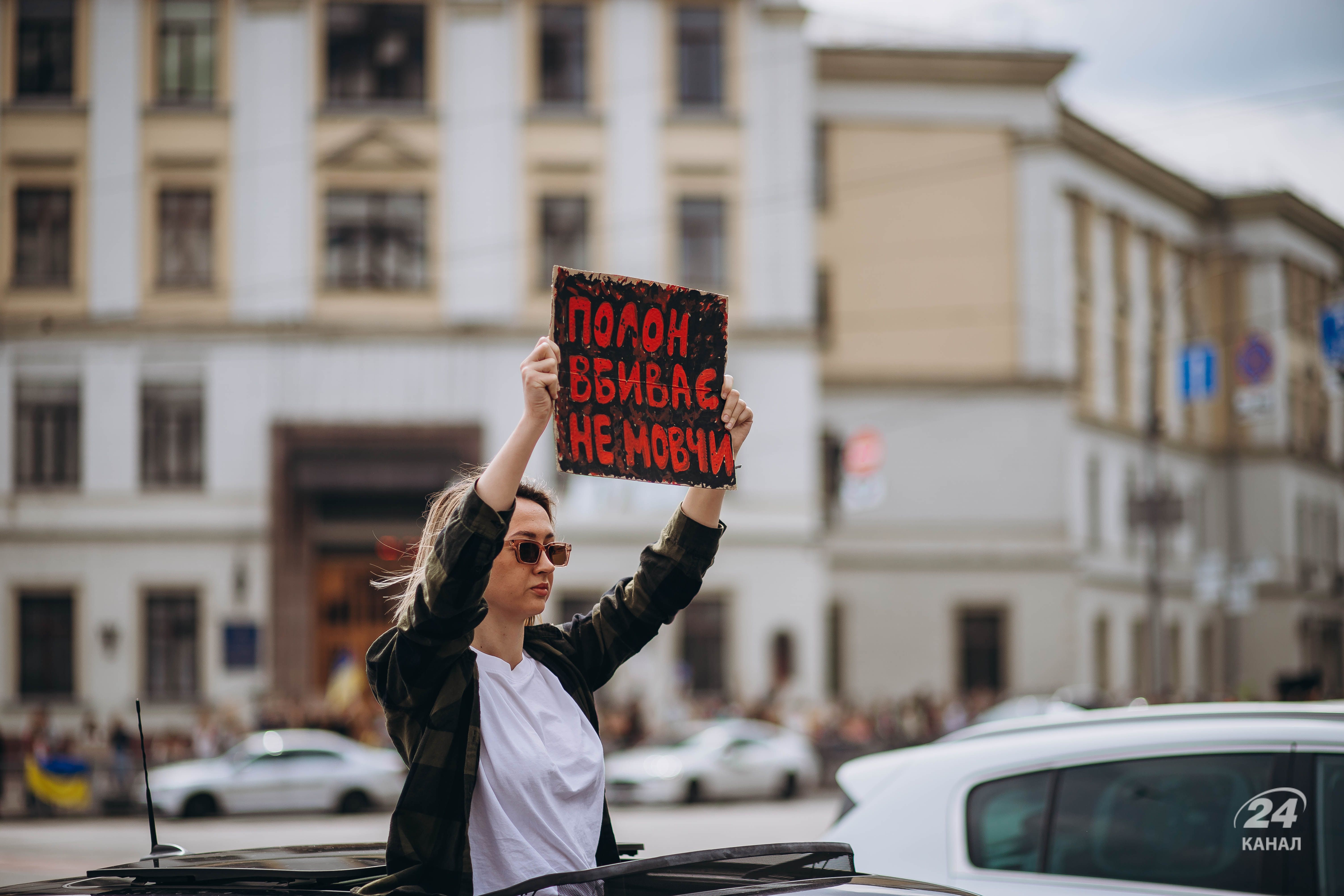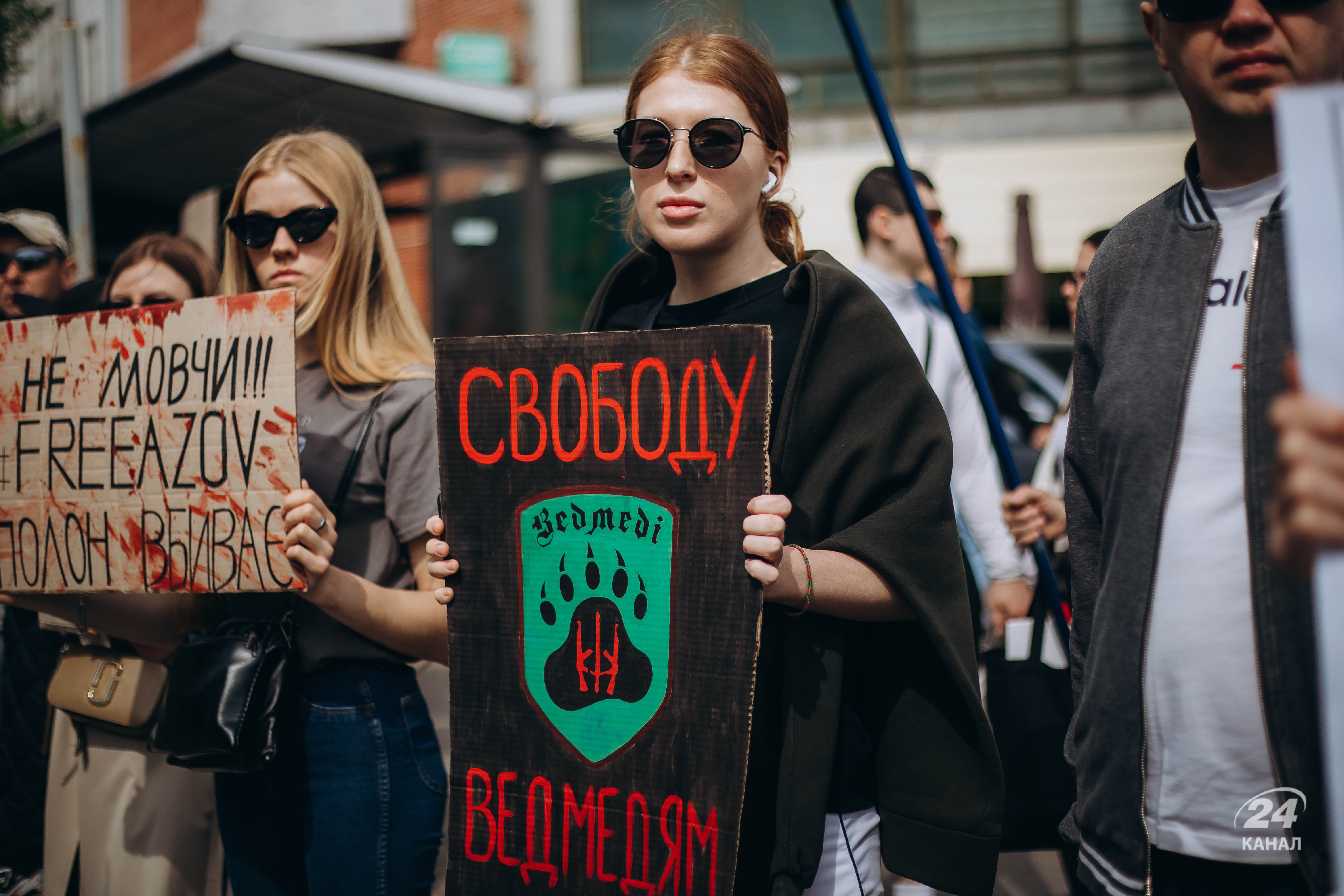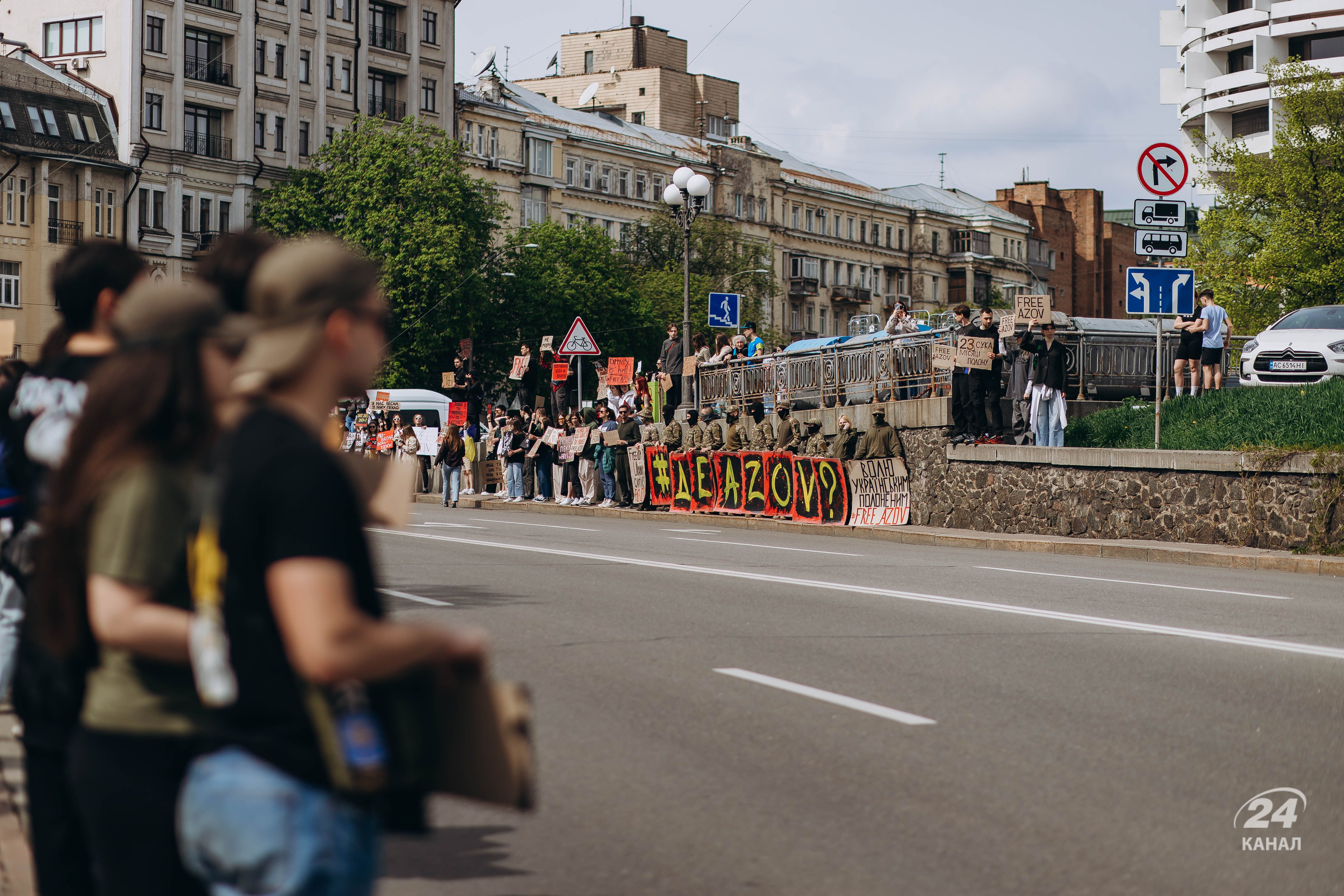 Люди тримали плакати з надписами "Твоя мовчанка може стати ганьбою", "Їх чекають вдома", "будь голосом полонених!", "Поверніть захисників Маріуполя – живих та полеглих" тощо.