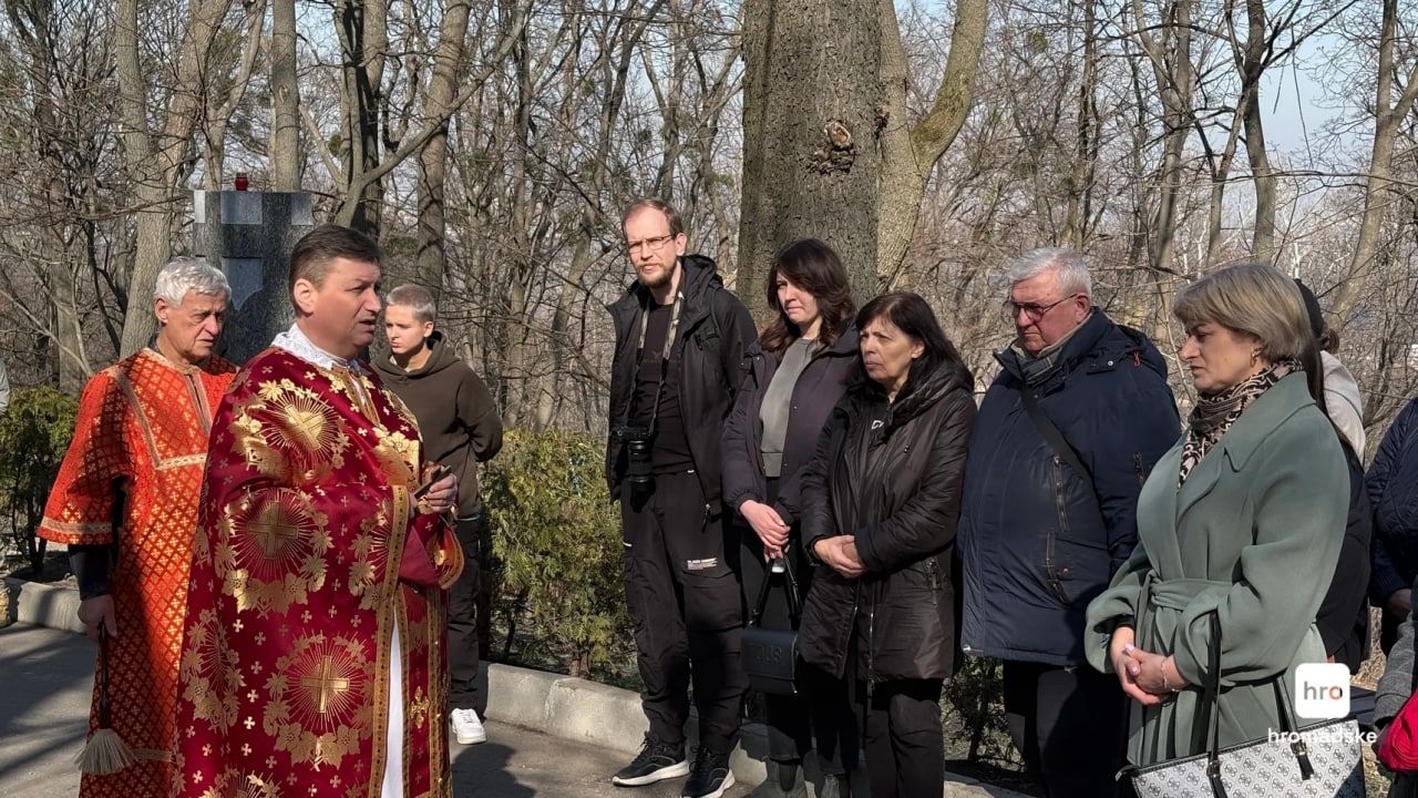Люди, які прийшли вшанувати пам'ять Дмитра Коцюбайла, об'єдналися в спільній молитві, а після була звершена панахида.