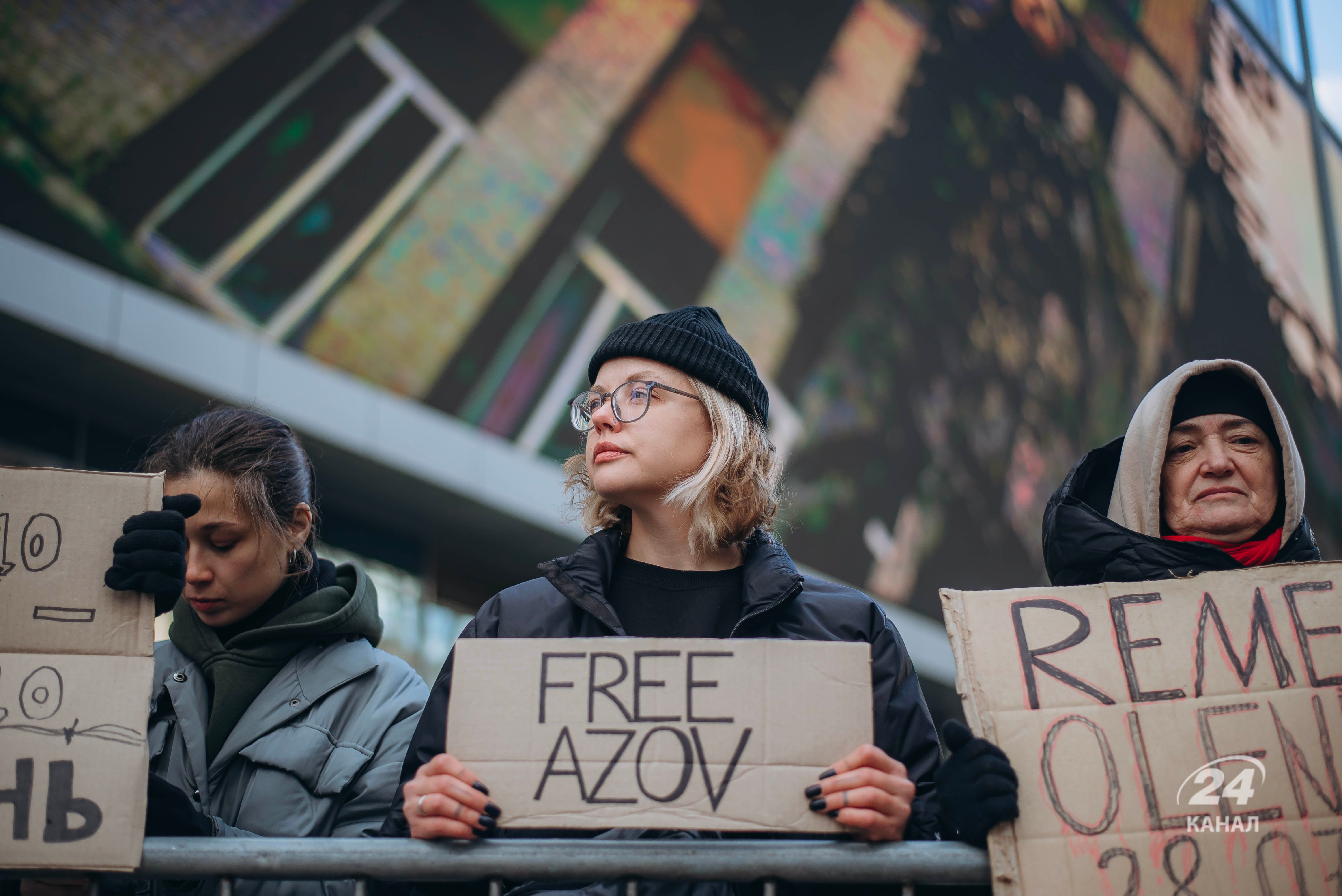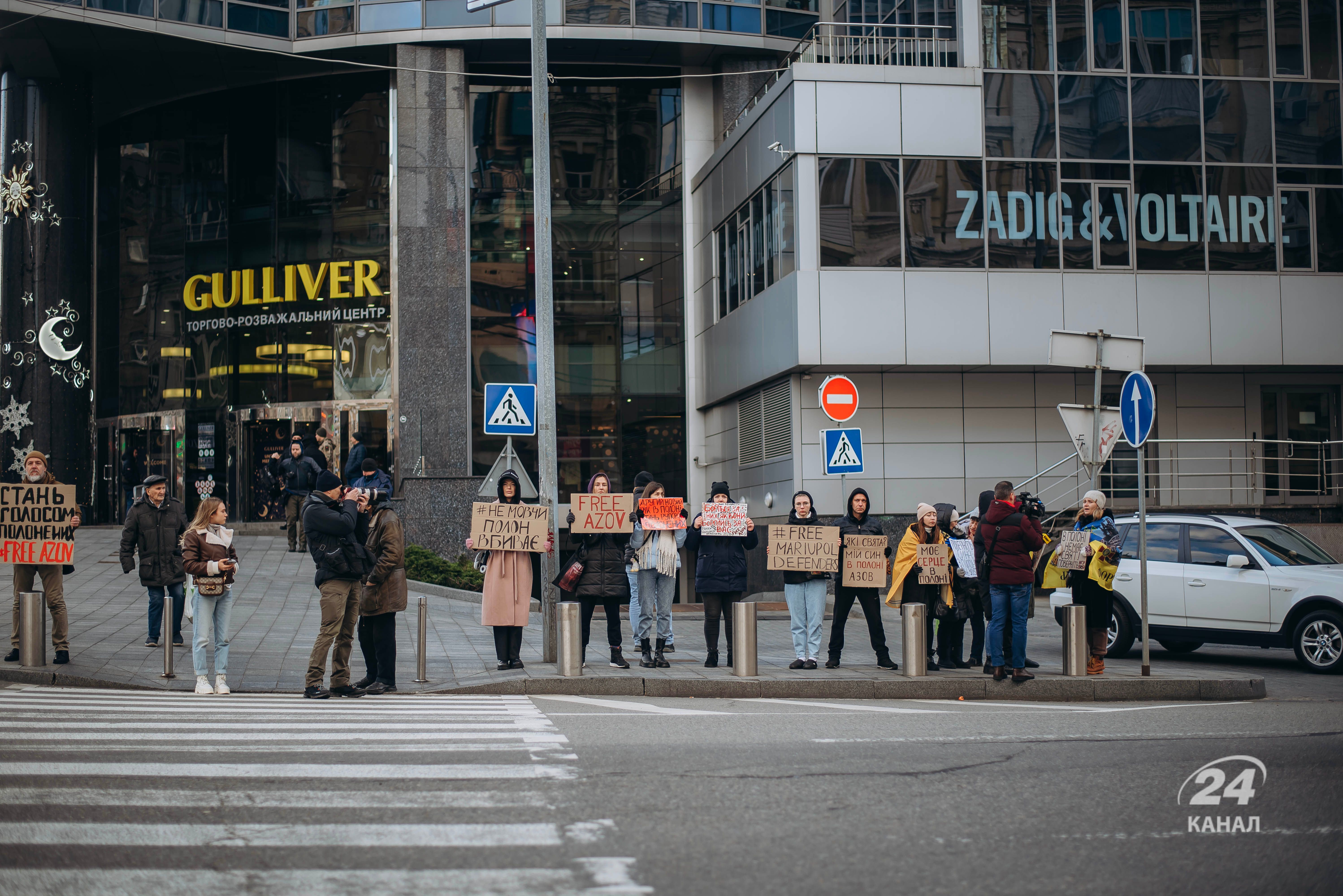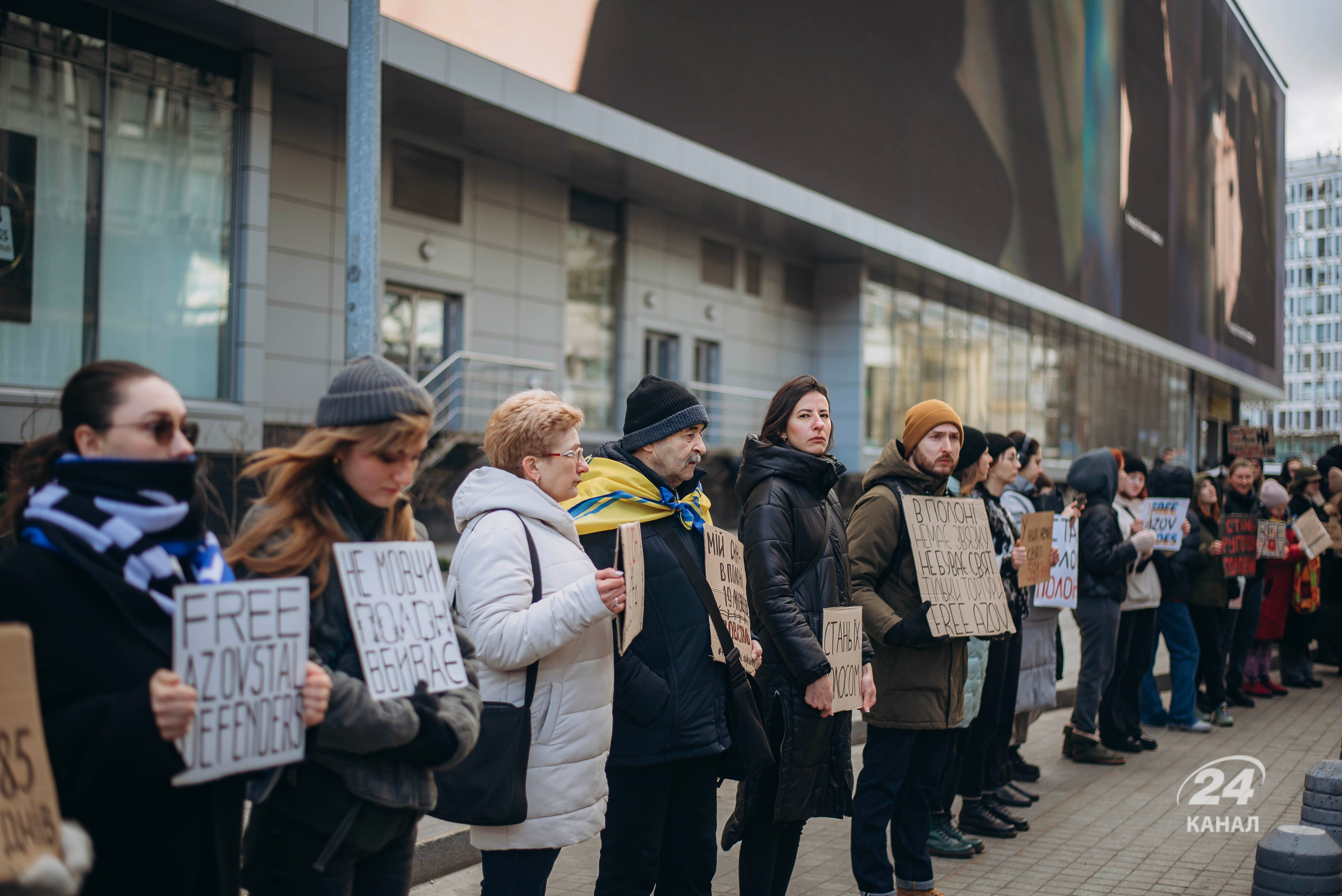 Участь в акції взяли декілька десятків людей. Вони тримали в руках плакати з написами "Free Azov", "Ми святкуємо ціною їхніх життів", "Стань голосом полонених", "Не мовчи, це їх вбиває" тощо.
