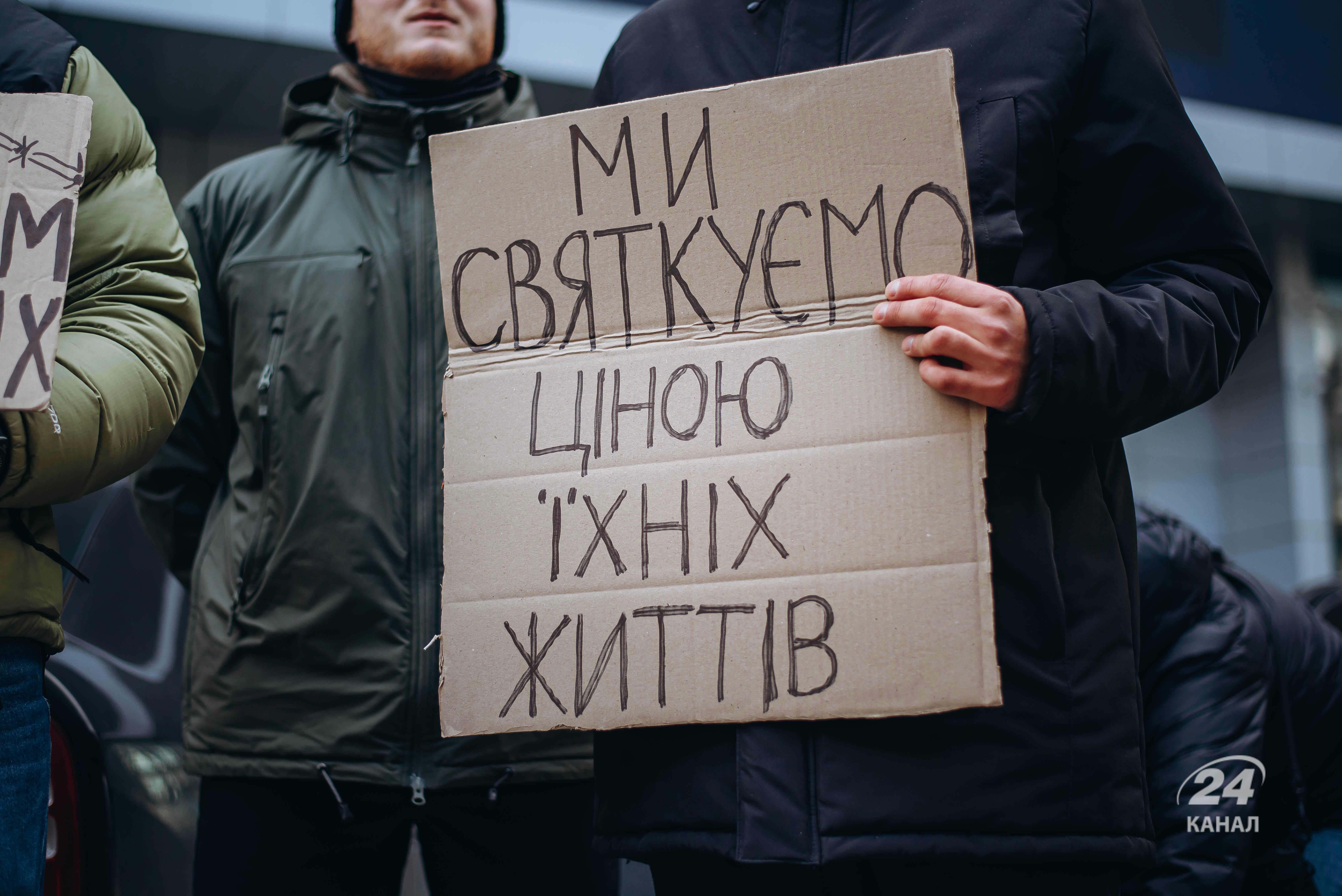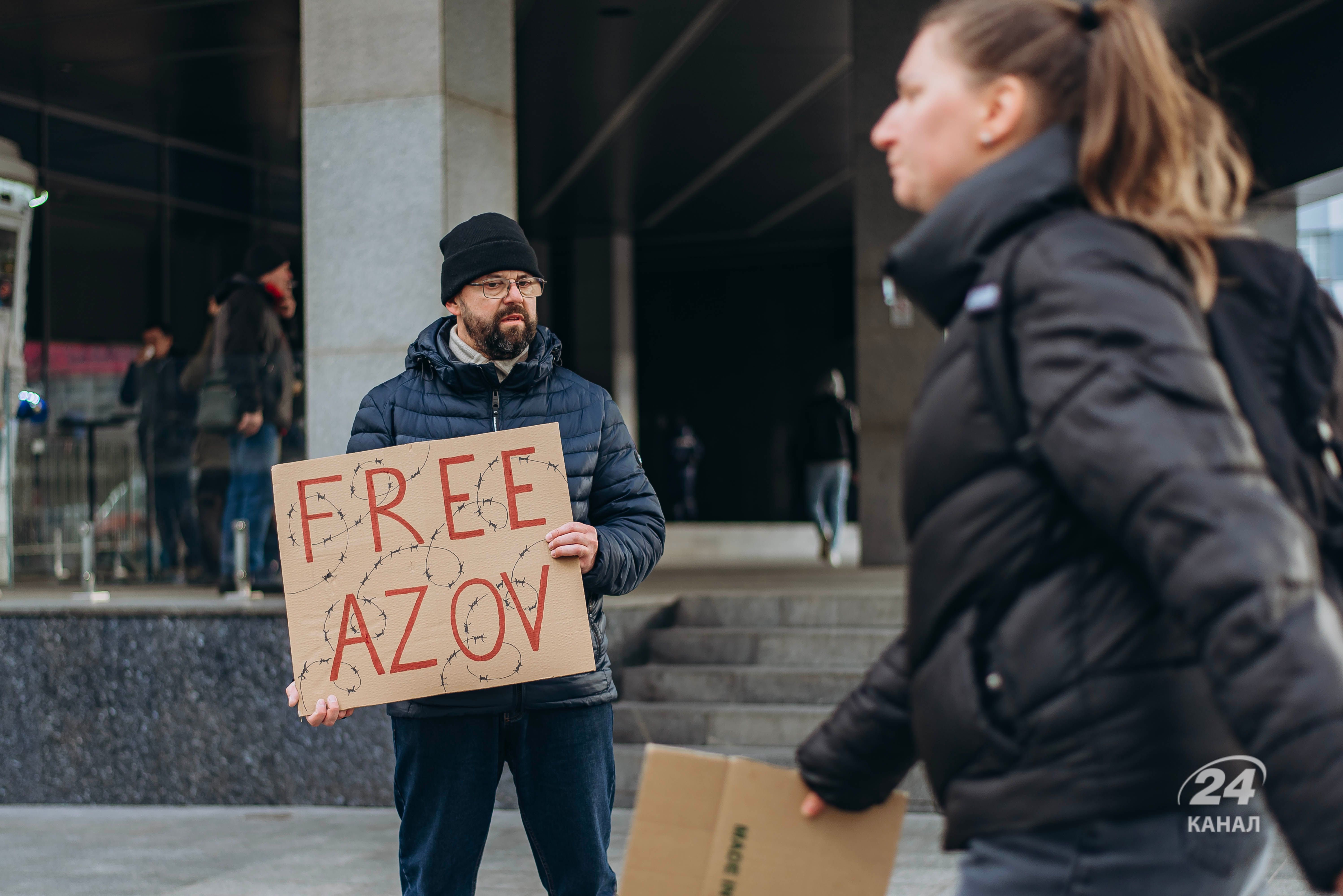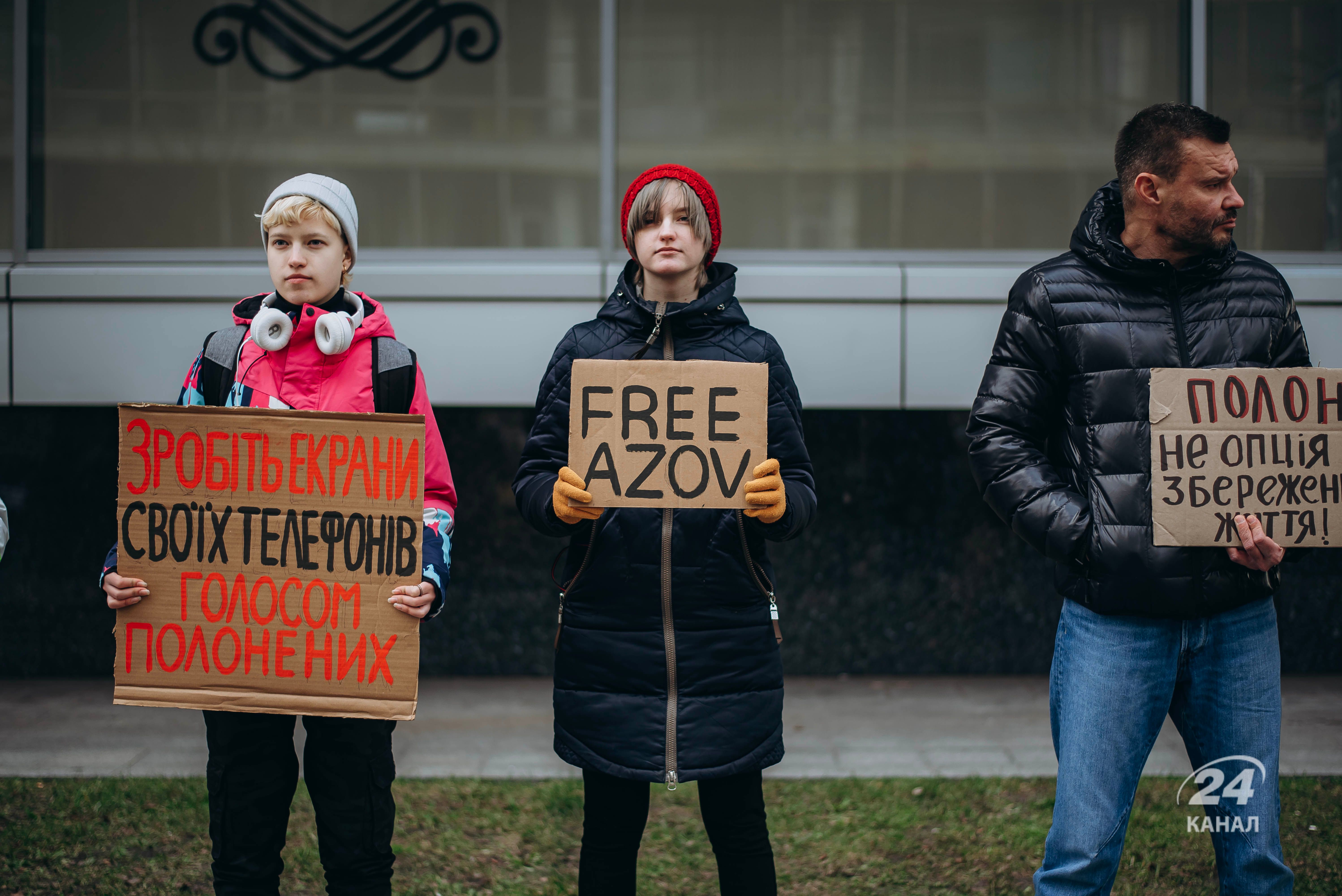 Участь в акції взяли декілька десятків людей. Вони тримали в руках плакати з написами "Free Azov", "Ми святкуємо ціною їхніх життів", "Стань голосом полонених", "Не мовчи, це їх вбиває" тощо.