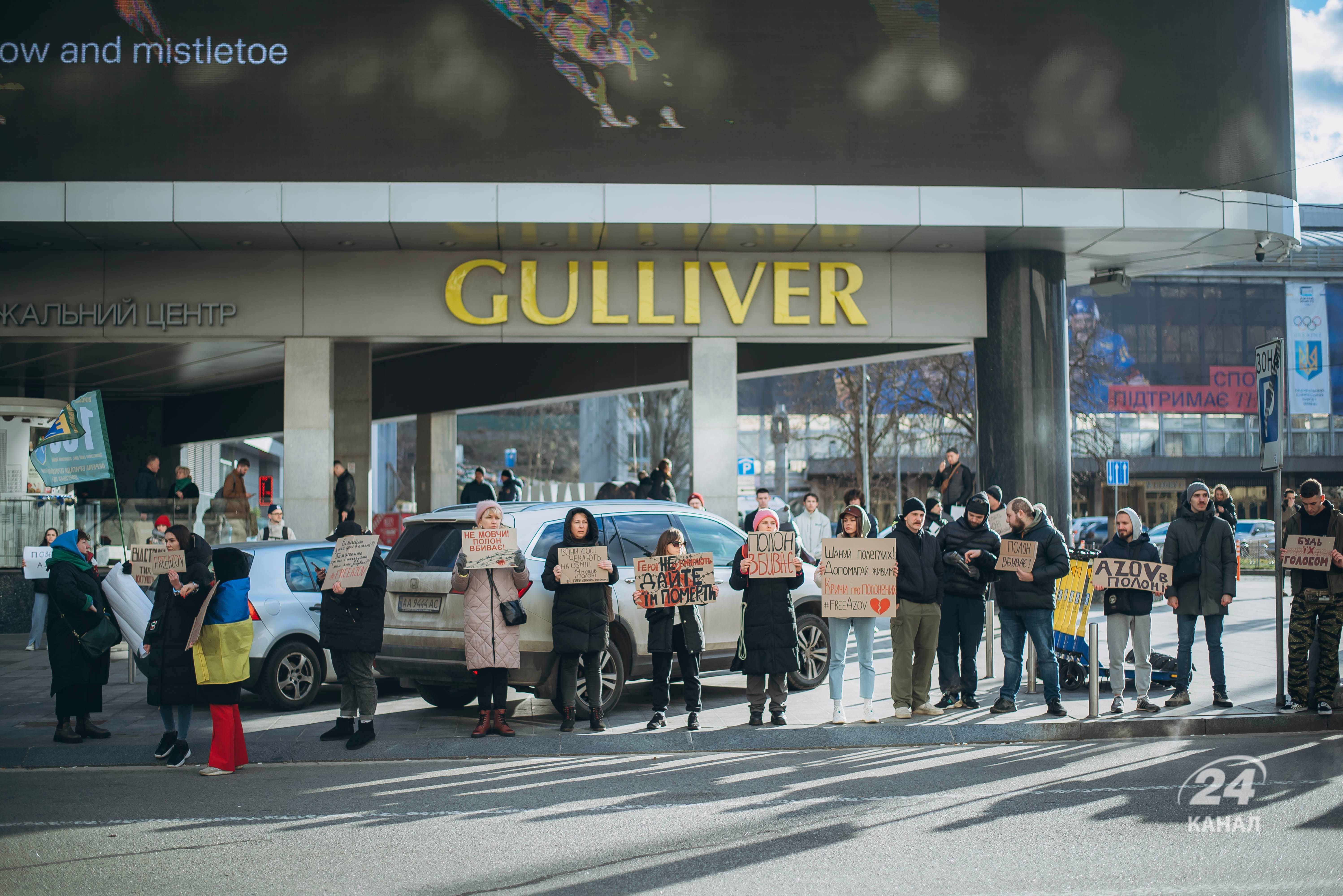 У Києві біля ТРЦ Gulliver провели акцію-нагадування "Другий Новий рік в полоні. Не мовчи. Полон – вбиває!". Таке місце проведення учасники обрали неспроста, адже власники ТРЦ не захотіли транслювати на рекламному банері відео про загиблих українських героїв і воїнів, які зараз перебувають у полоні. Про це пише 24 Канал.