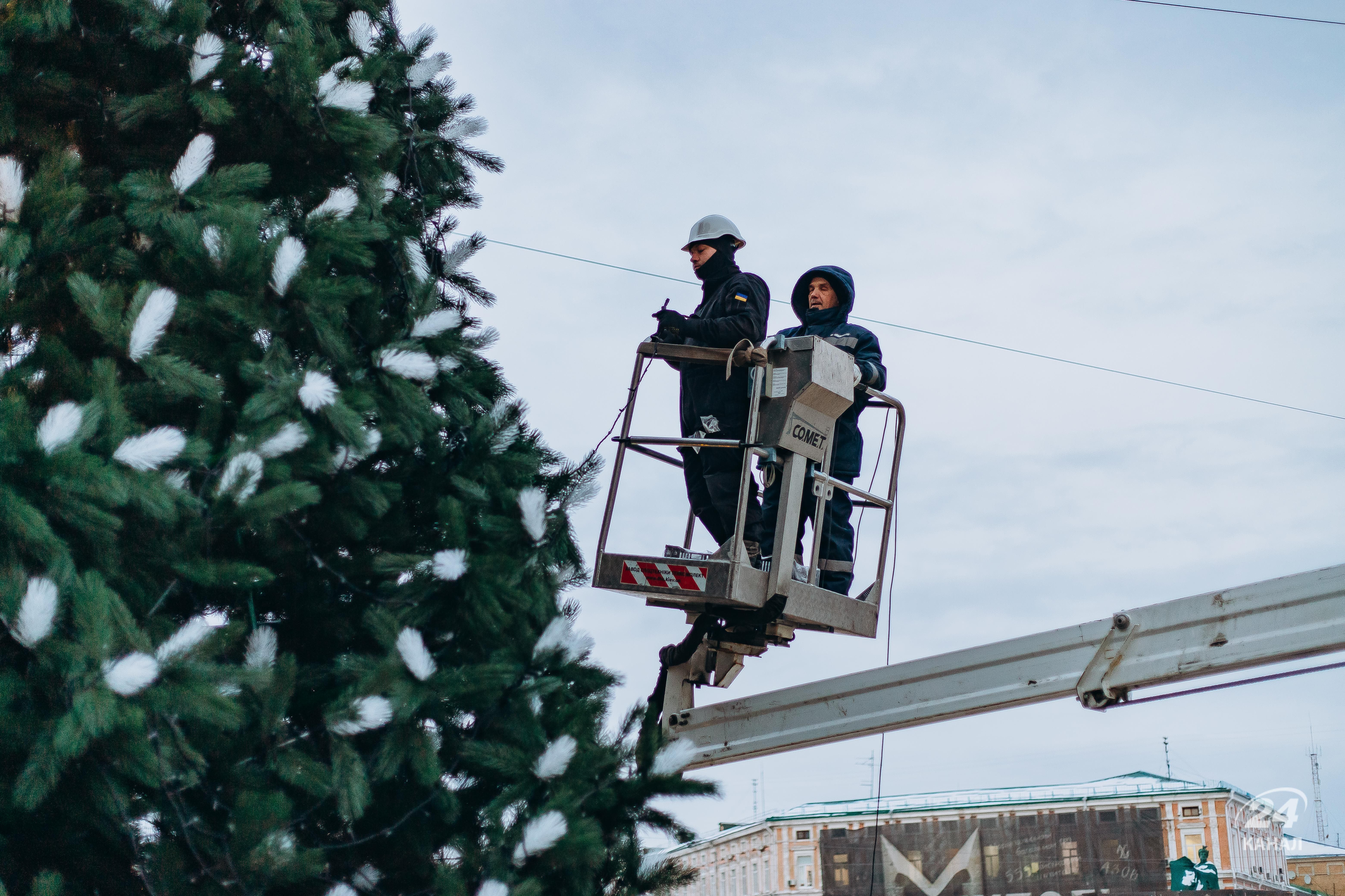 - Організатори встановлення зауважили, що вирішили поставити ялинку, аби підтримати традиції, а не влаштовувати шоу. Тому біля дерева поставили менші ялиночки: на них будуть прикраси із QR-кодом. Іграшки можна забрати собі, але за донат на ЗСУ.
