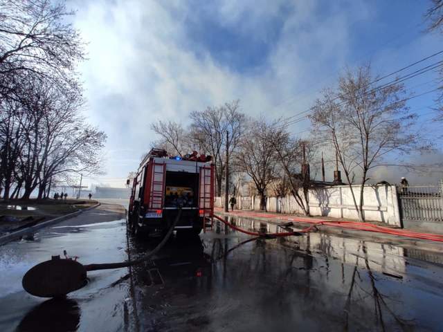 У ДСНС повідомили, що станом на 10:18 пожежу в складських будівлях та гаражах у Солом'янському районі локалізовали на площі 700 метрів квадратних.
